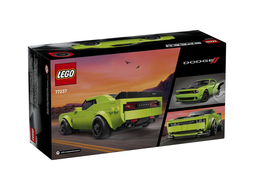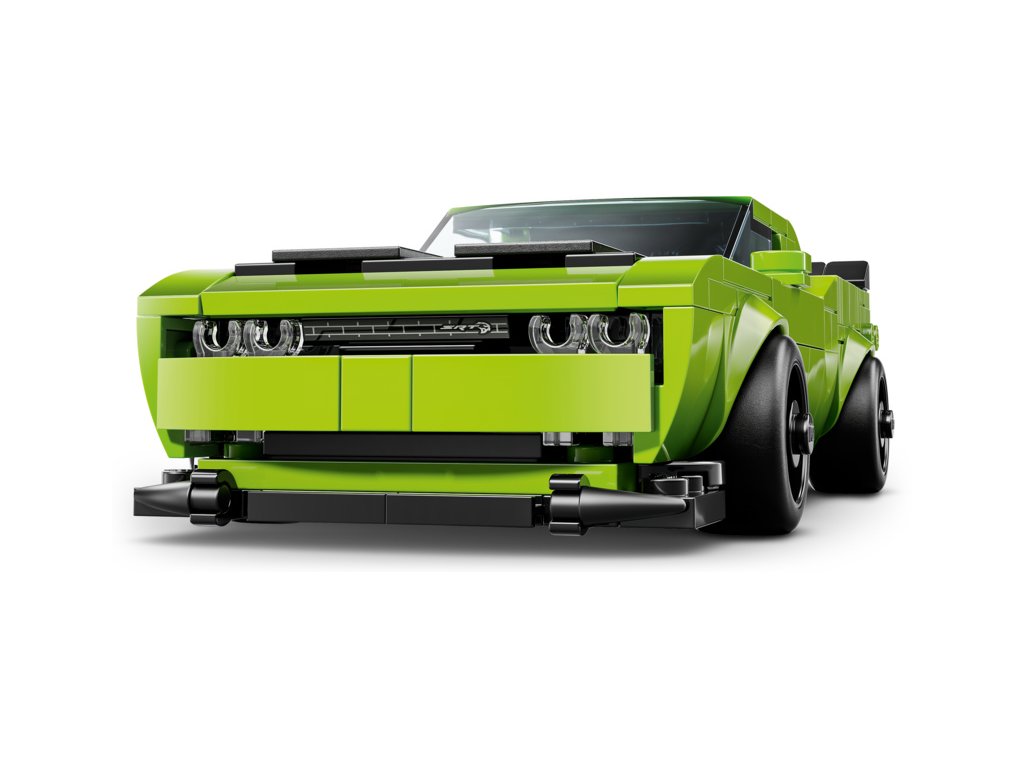 Toto dvoudveřové kupé je vůbec první moderní auto Dodge, které se objevilo v řadě LEGO Speed Champions. Model má dlouhou kapotu, vypouklé sání na kapotě, výraznou přední masku a dvojitý výfuk. Součástí sběratelského modelu je také minifigurka řidiče, se kterou se děti a fanoušci sporťáků můžou pustit do závodění na trati i na silnici.