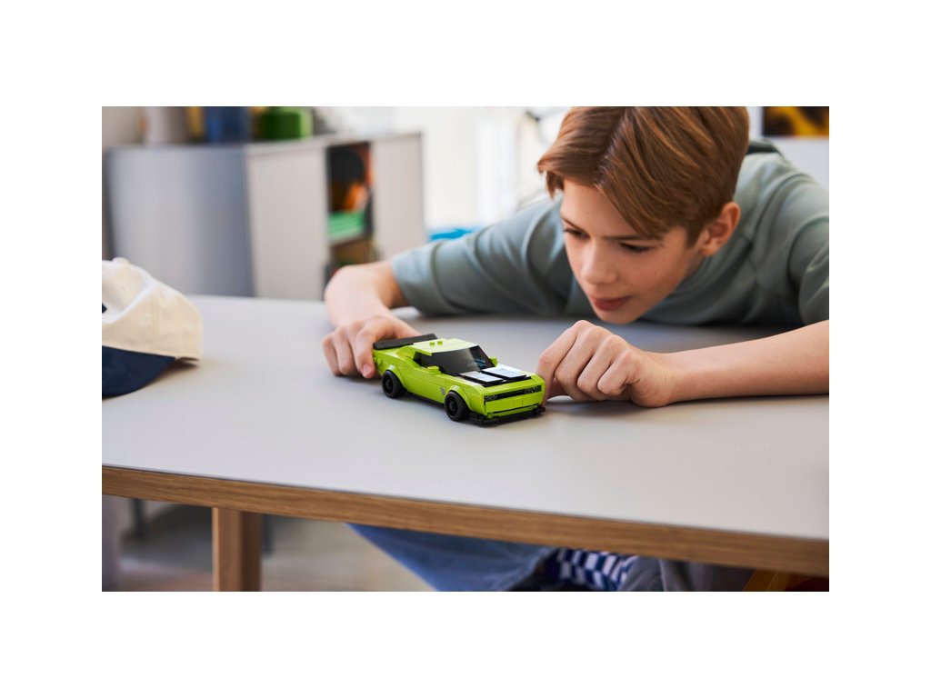 - Výkonný sporťák pro malé stavitele – Děti od 9 let a fanoušci výkonných sporťáků si postaví a vystaví závodní model LEGO® Speed Champions Sportovní auto Dodge Challenger SRT Hellcat