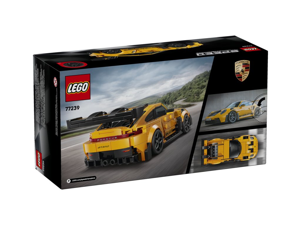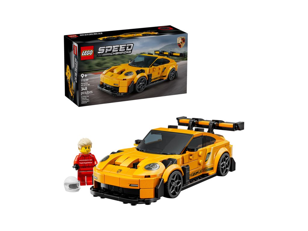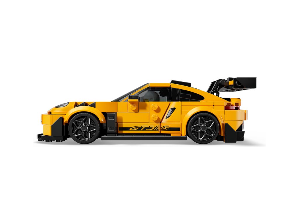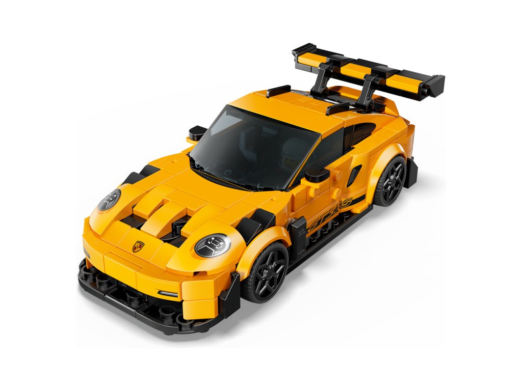 Model Porsche 911 GT3 RS se pyšní známým zadním křídlem, sáním na kapotě, výraznými světlomety a moderními ráfky. Součástí této stavebnice vozu LEGO je také minifigurka řidiče v helmě ačervené kombinéze Porsche Track Day Experience. Děti minifigurku posadí za volant a uspořádají vlastní závody na trati.