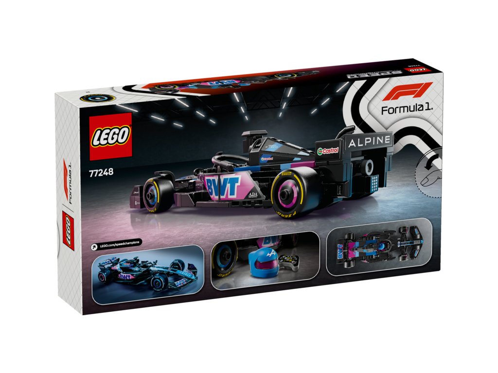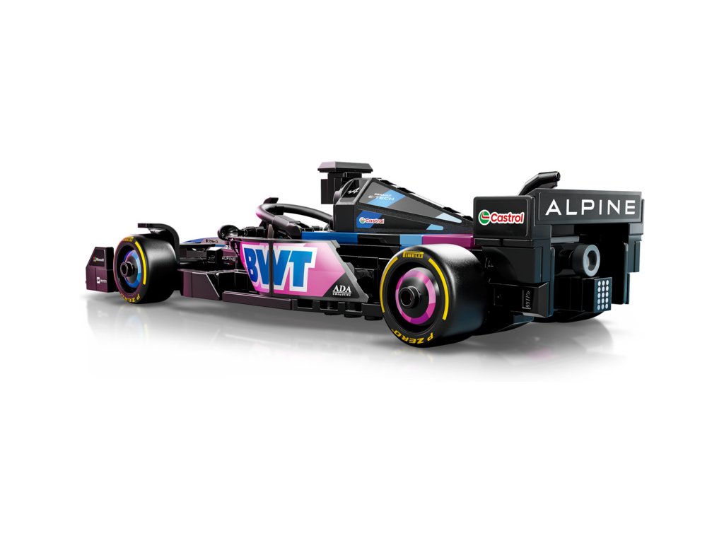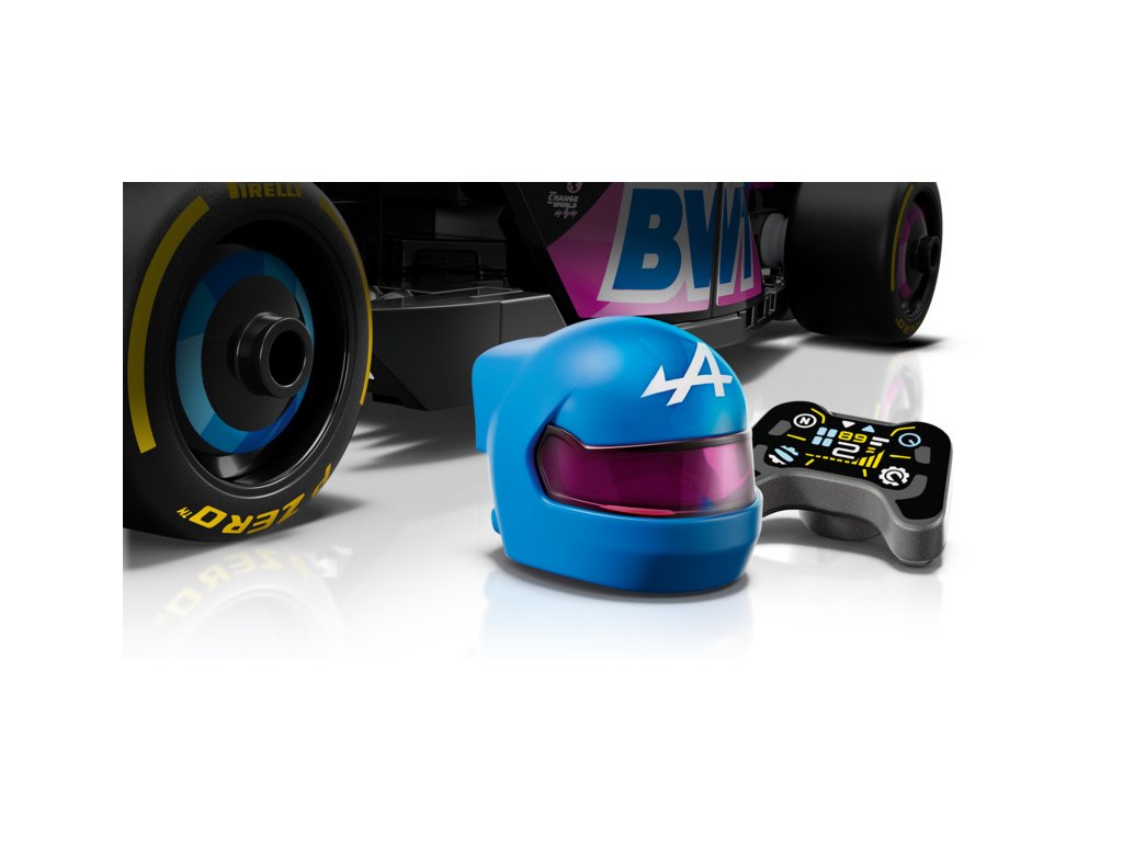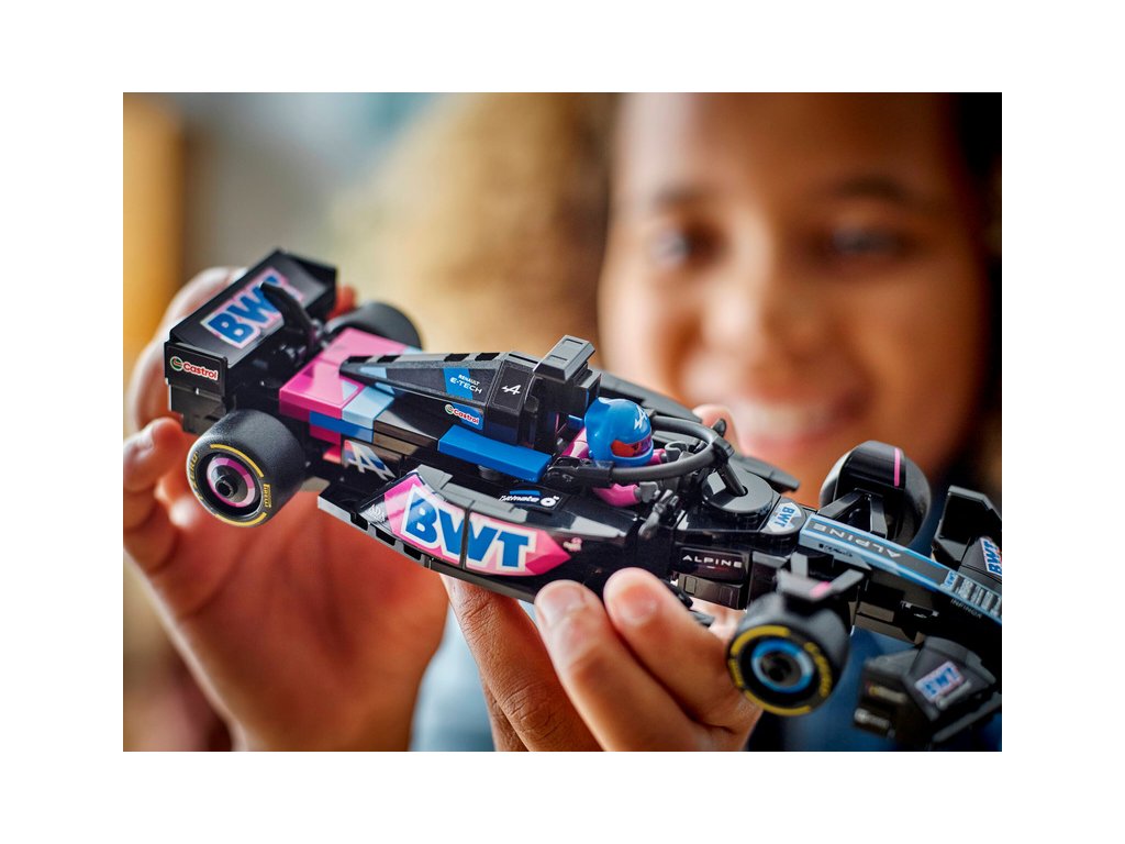 Tento model vozu F1 má kokpit, který lze otevřít zvednutím svatozáře, zadní křídlo, rovnoběžníkovou nápravu, polepy sponzorů a širší zadní pneumatiky s nápisem „Pirelli“. Součástí závodního auta je také minifigurka jezdce v outfitu Alpine s okřídlenou helmou, kterou můžete umístit do kokpitu.
