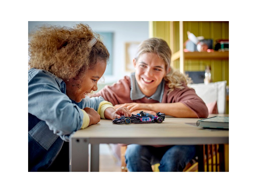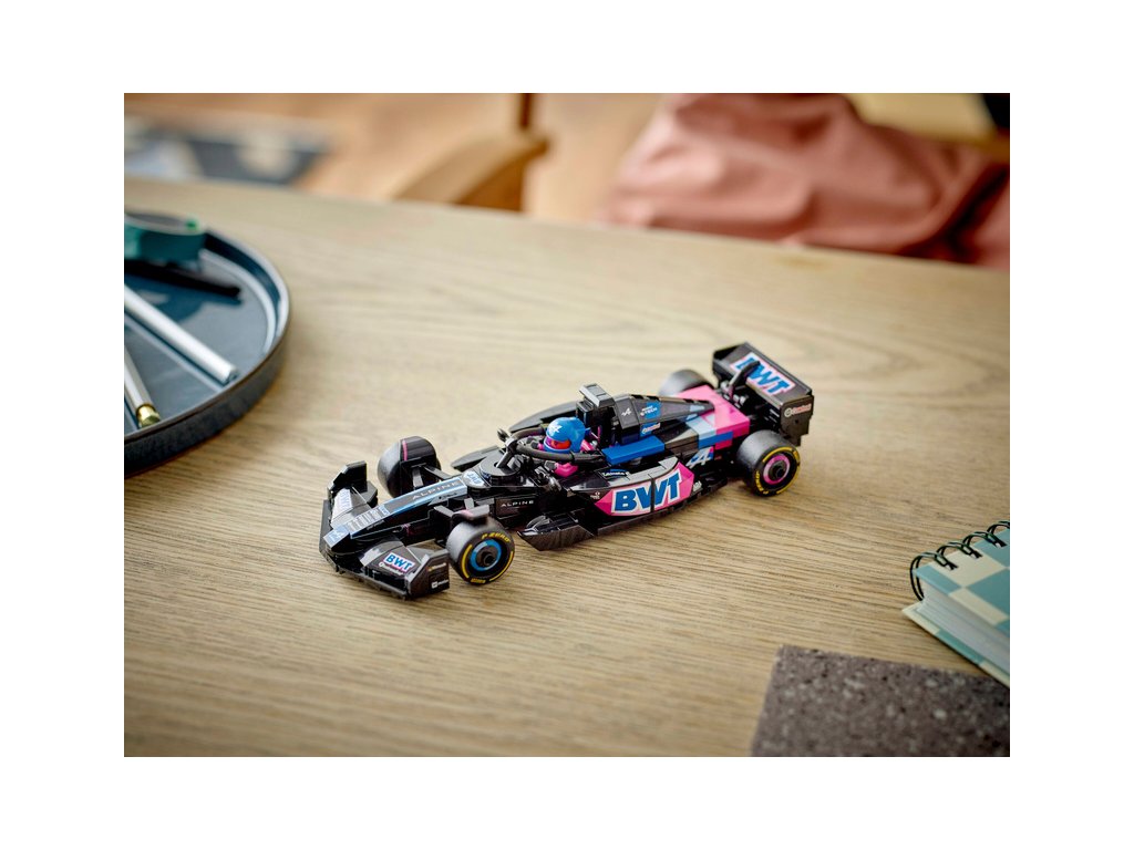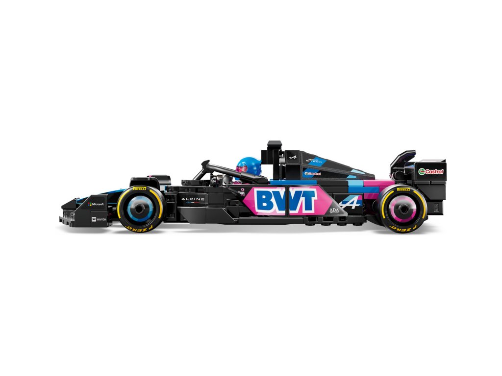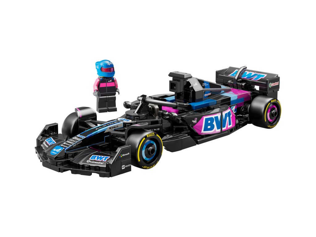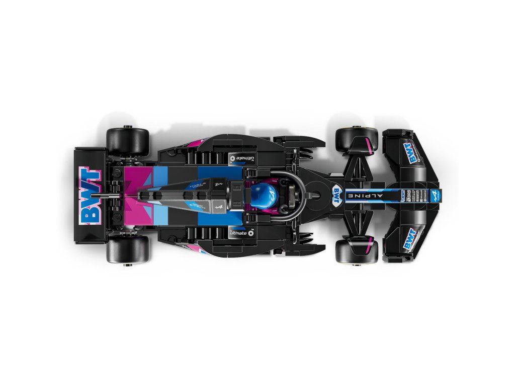 Tento model vozu F1 má kokpit, který lze otevřít zvednutím svatozáře, zadní křídlo, rovnoběžníkovou nápravu, polepy sponzorů a širší zadní pneumatiky s nápisem „Pirelli“. Součástí závodního auta je také minifigurka jezdce v outfitu Alpine s okřídlenou helmou, kterou můžete umístit do kokpitu.