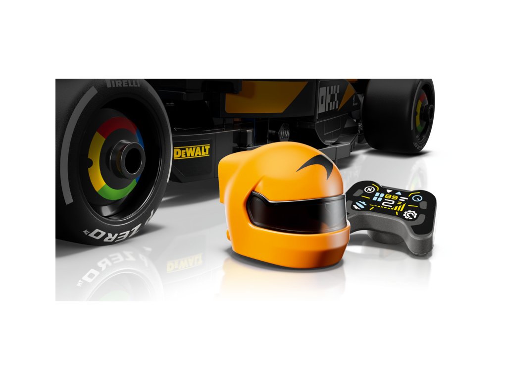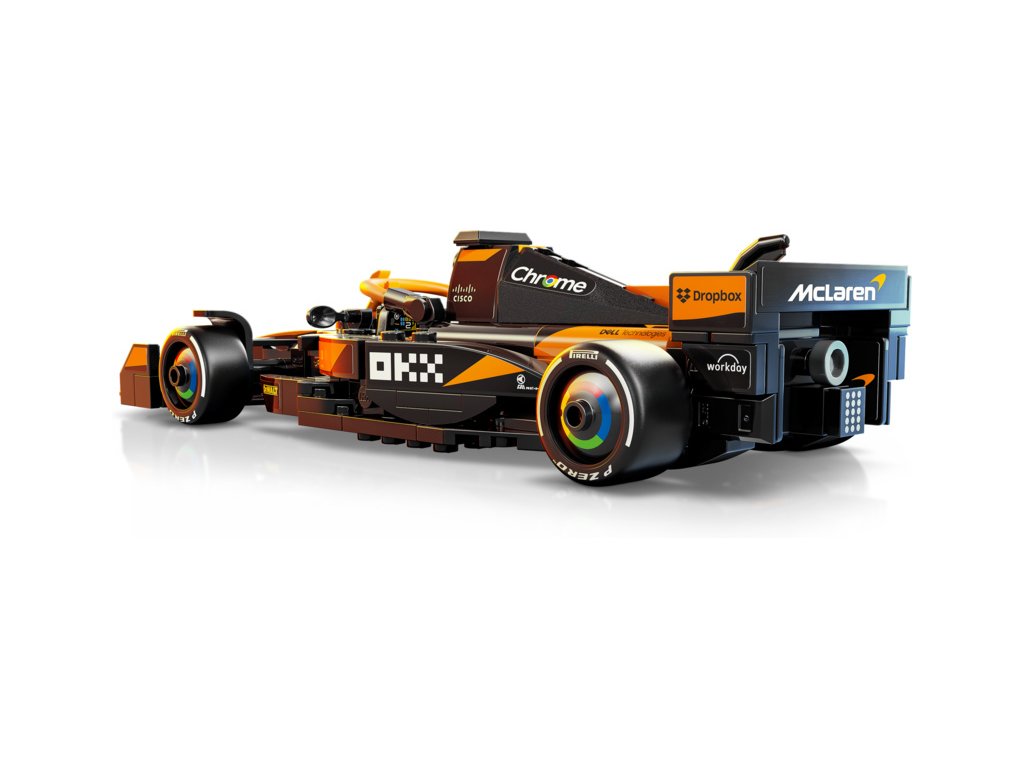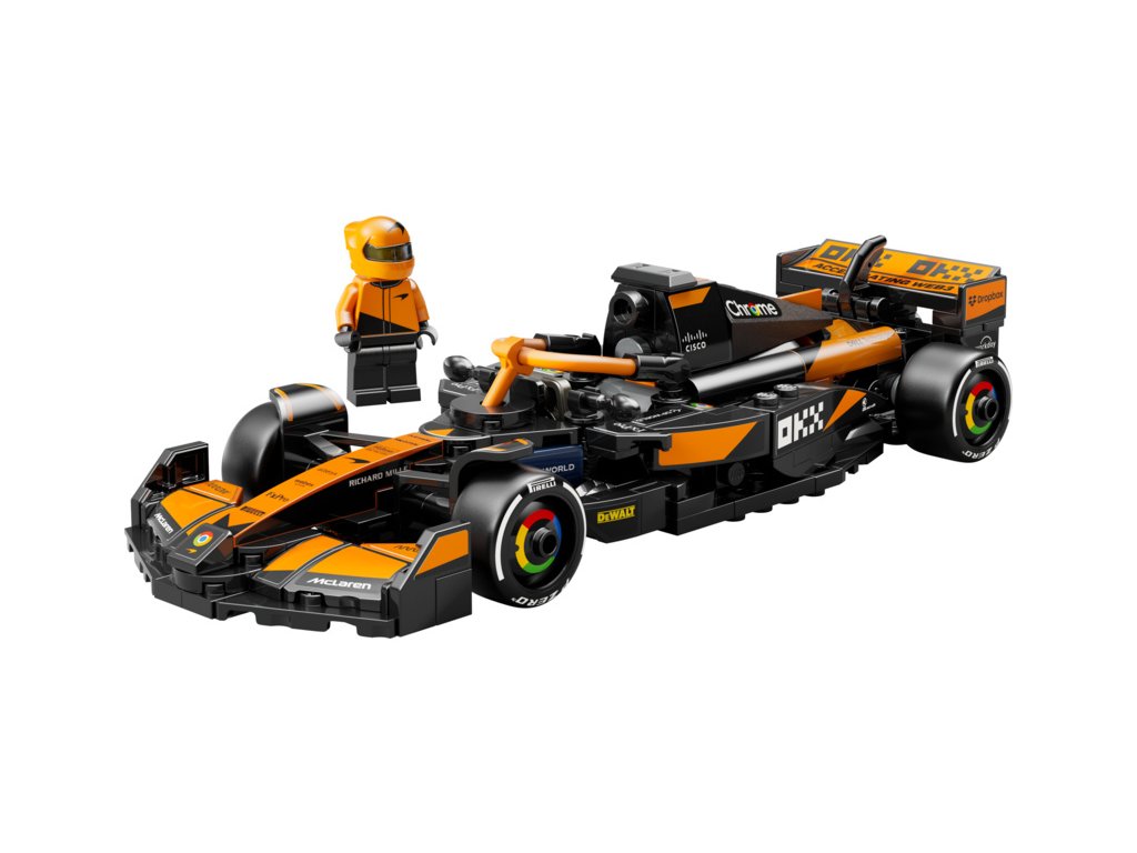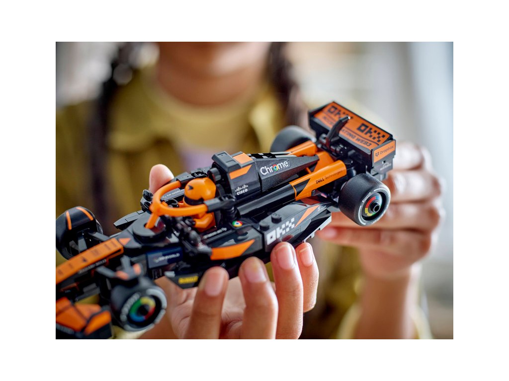 Tento model vozu F1 má kokpit, který lze otevřít zvednutím svatozáře, zadní křídlo, rovnoběžníkovou nápravu, polepy sponzorů a širší zadní pneumatiky s nápisem „Pirelli“. Součástí vozu je také minifigurka jezdce v outfitu McLaren s okřídlenou helmou, kterou můžete umístit do kokpitu a užít si s ní akční závody.