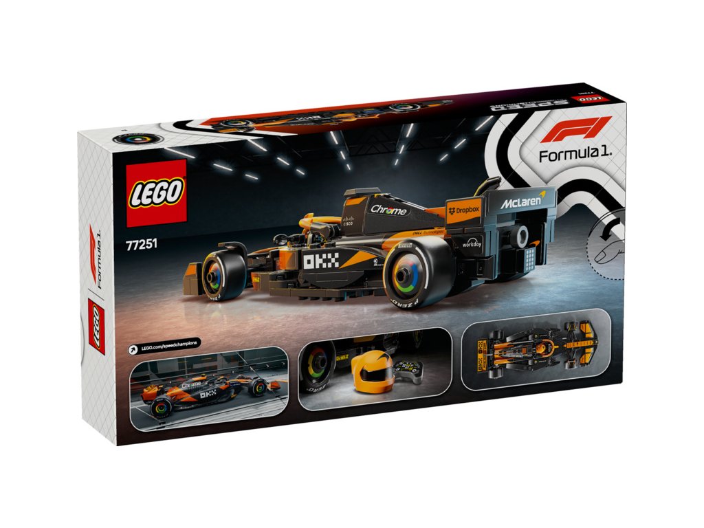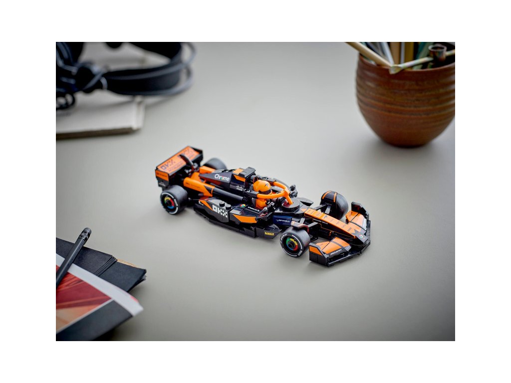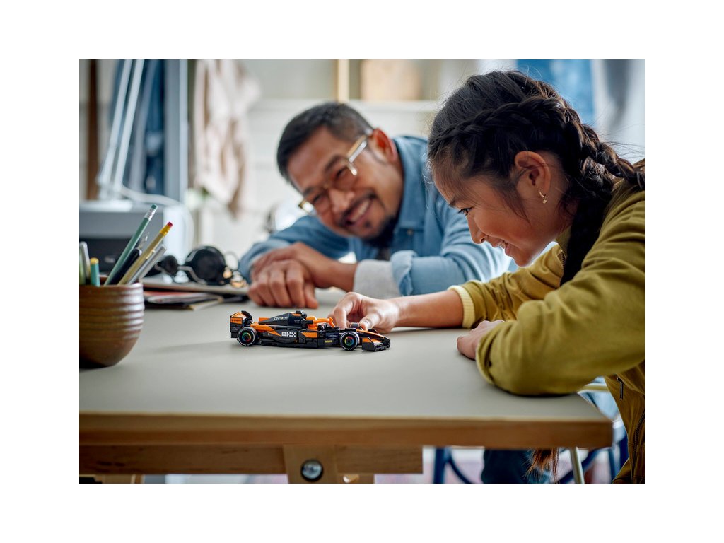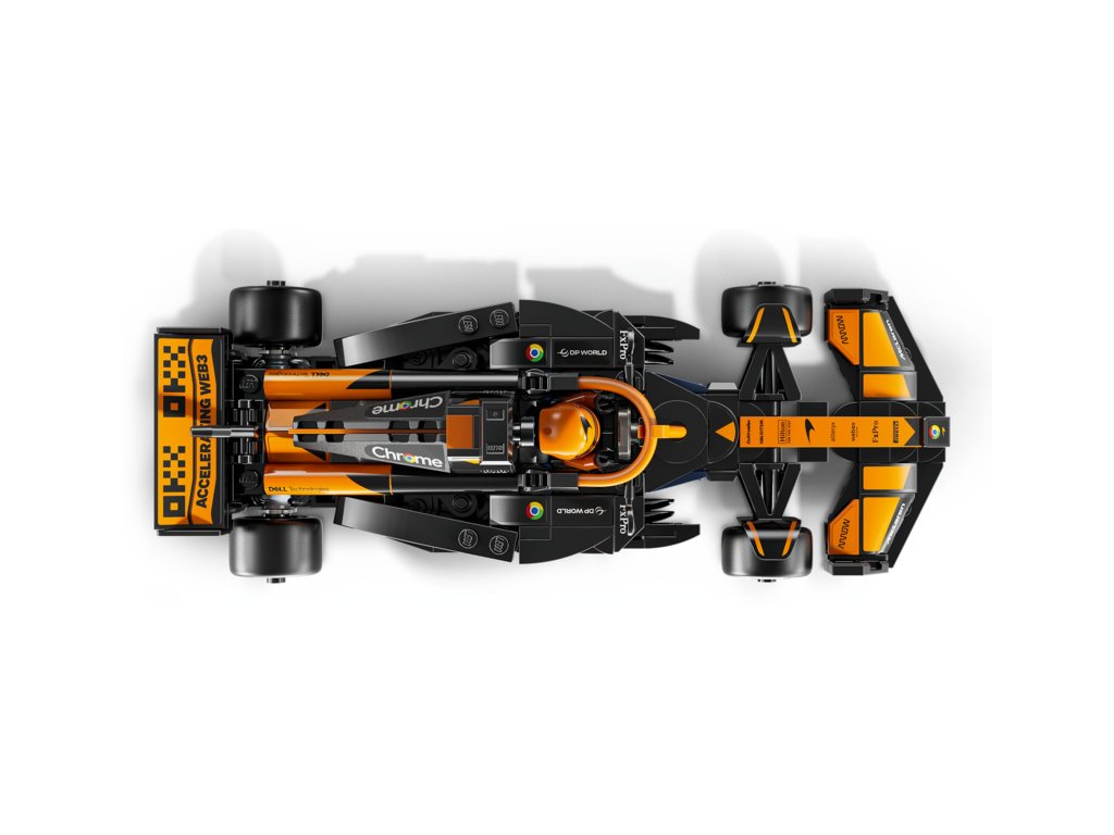 Tento model vozu F1 má kokpit, který lze otevřít zvednutím svatozáře, zadní křídlo, rovnoběžníkovou nápravu, polepy sponzorů a širší zadní pneumatiky s nápisem „Pirelli“. Součástí vozu je také minifigurka jezdce v outfitu McLaren s okřídlenou helmou, kterou můžete umístit do kokpitu a užít si s ní akční závody.