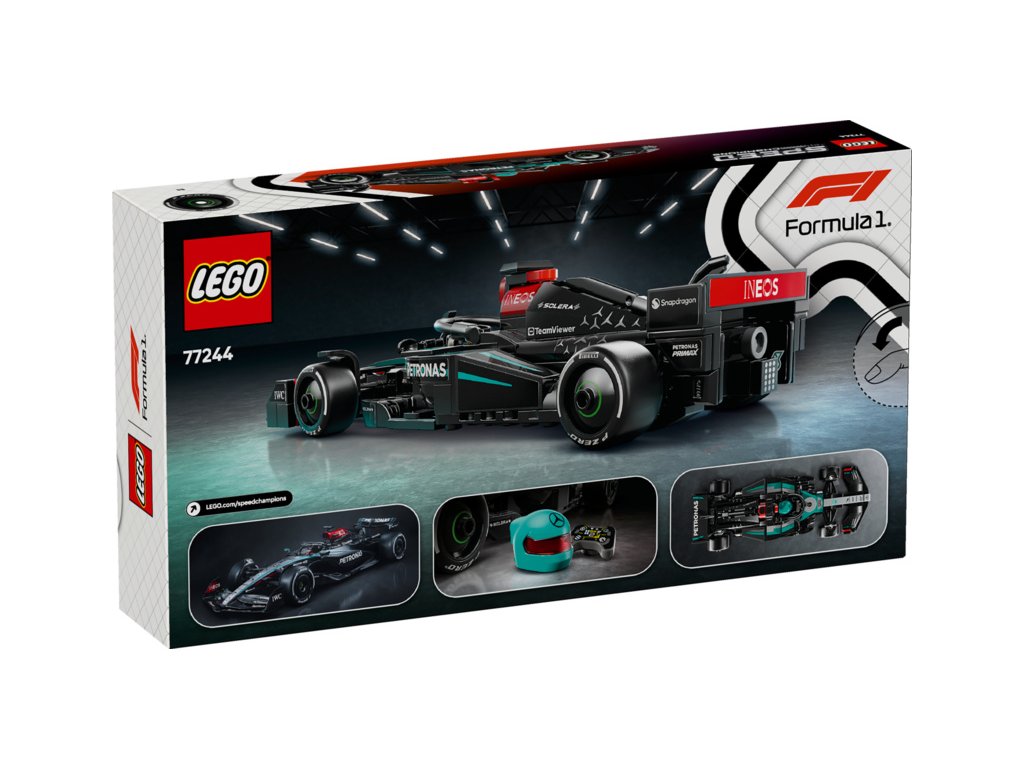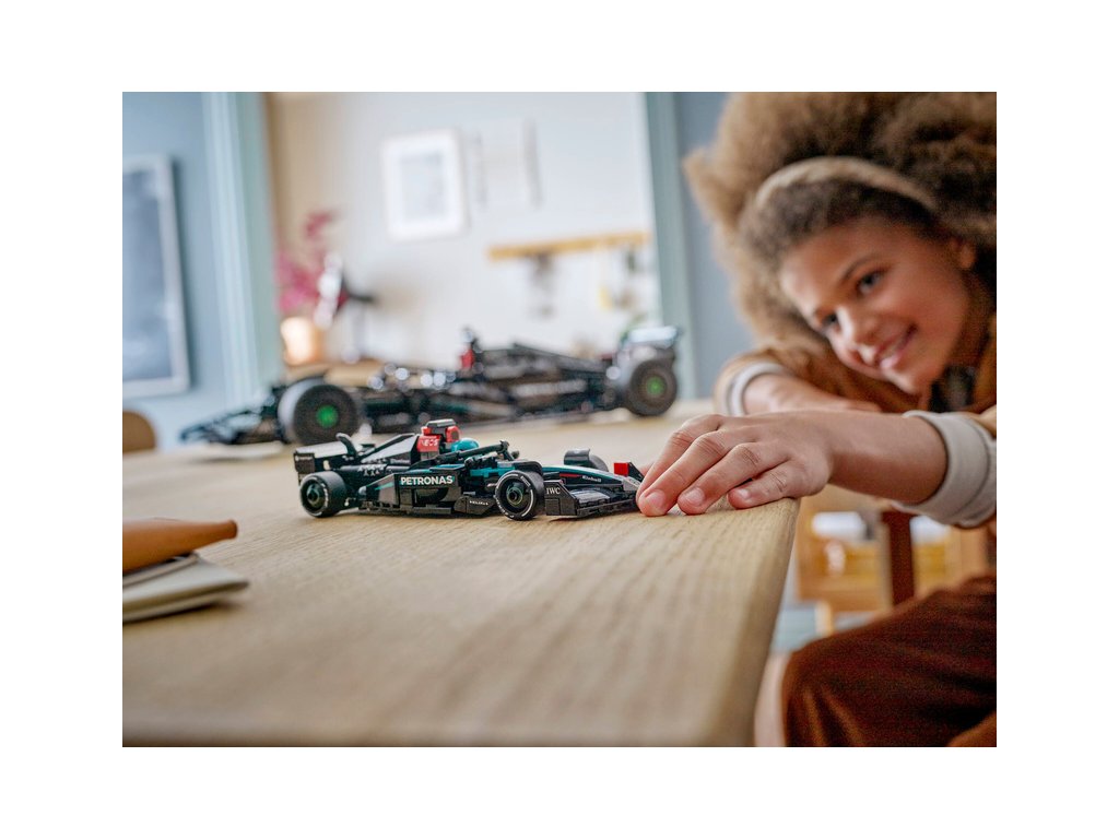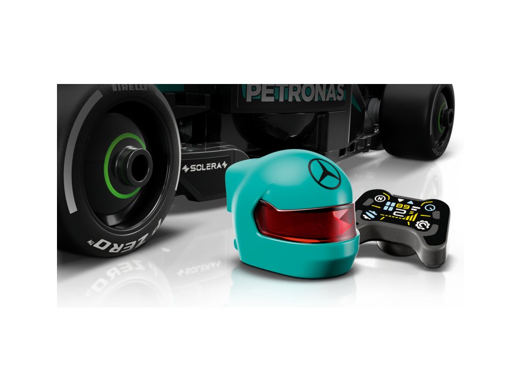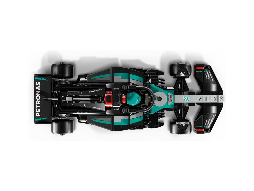 Tento model vozu F1 má kokpit, který lze otevřít zvednutím svatozáře, zadní křídlo, rovnoběžníkovou nápravu, polepy sponzorů a širší zadní pneumatiky s nápisem „Pirelli“. Součástí sestavitelného modelu je také minifigurka jezdce v outfitu Mercedes-AMG PETRONAS F1 Team s okřídlenou helmou, kterou můžete umístit do kokpitu a šlápnout na plyn.