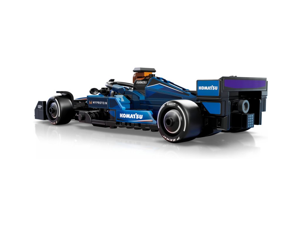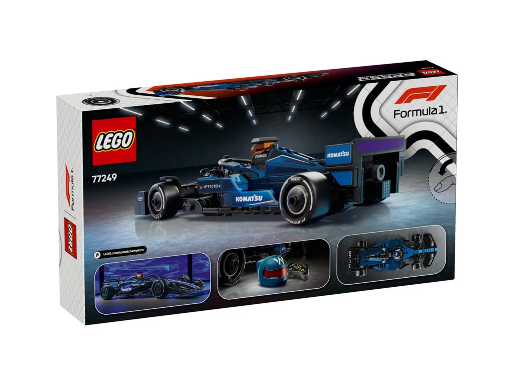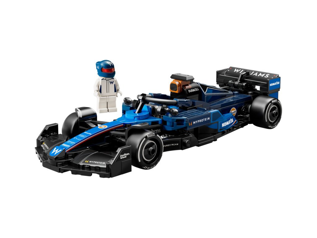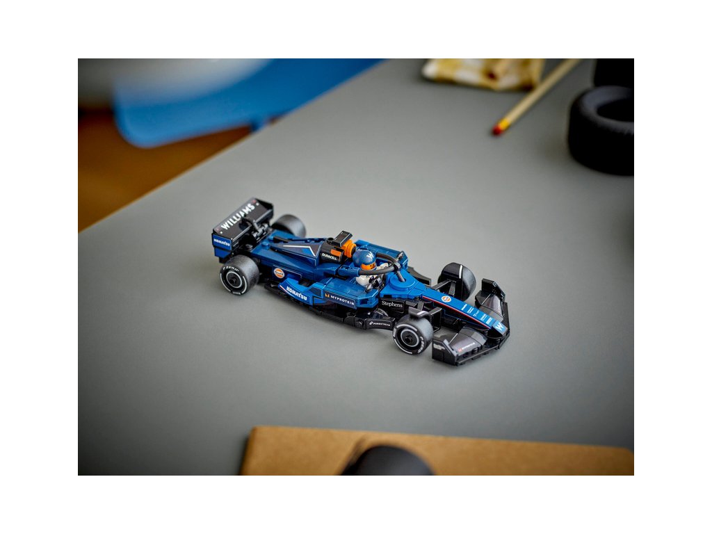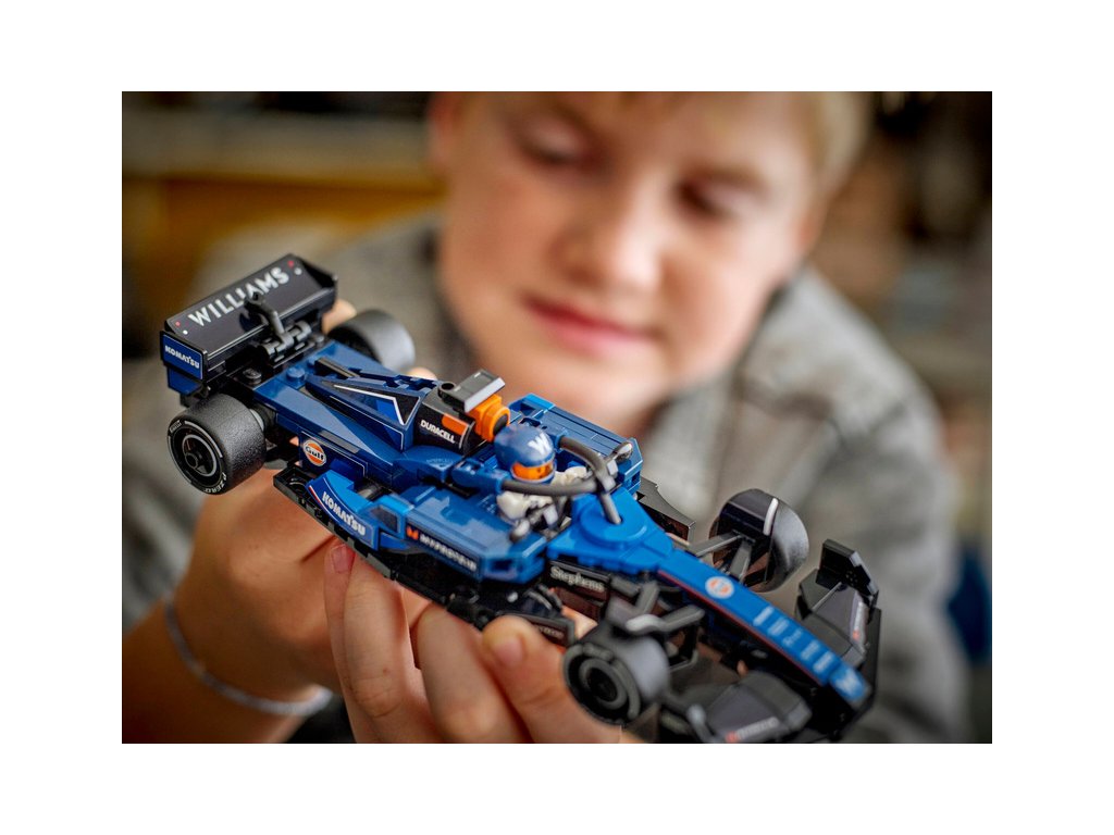 Tento model vozu F1 má kokpit, který lze otevřít zvednutím svatozáře, zadní křídlo, rovnoběžníkovou nápravu, polepy sponzorů a širší zadní pneumatiky s nápisem „Pirelli“. Součástí sestavitelného auta F1 je také minifigurka jezdce v outfitu Williams Racing s okřídlenou helmou, kterou můžete umístit do kokpitu.