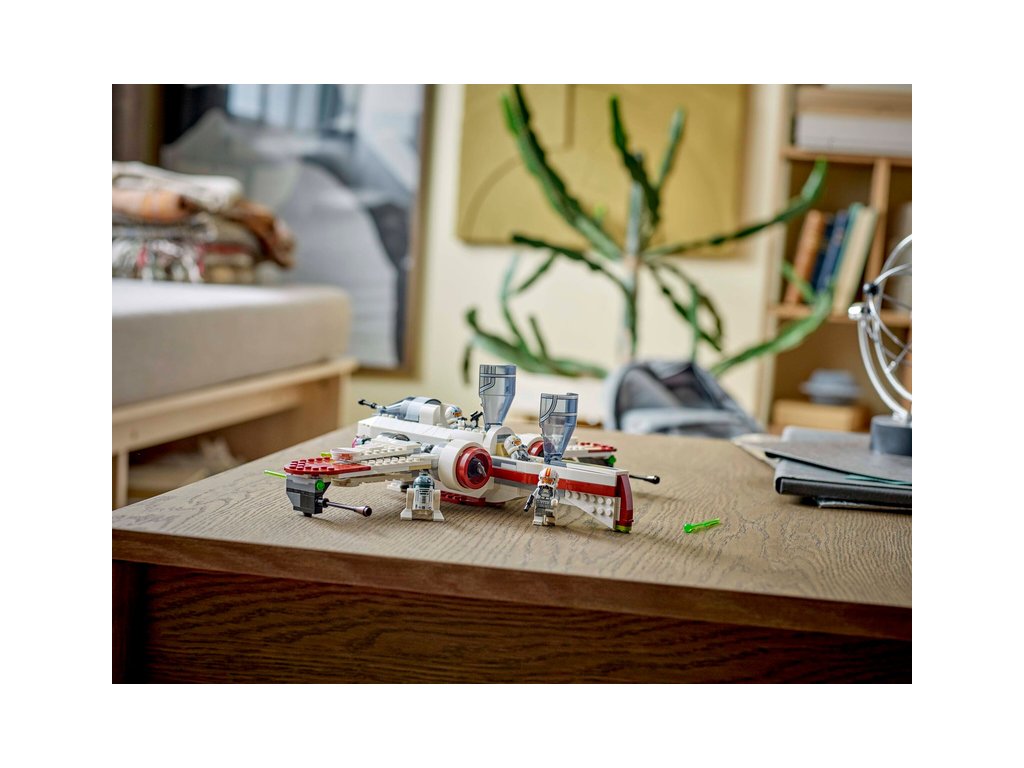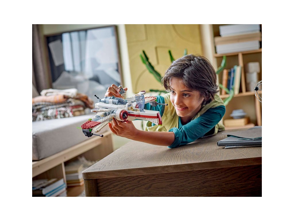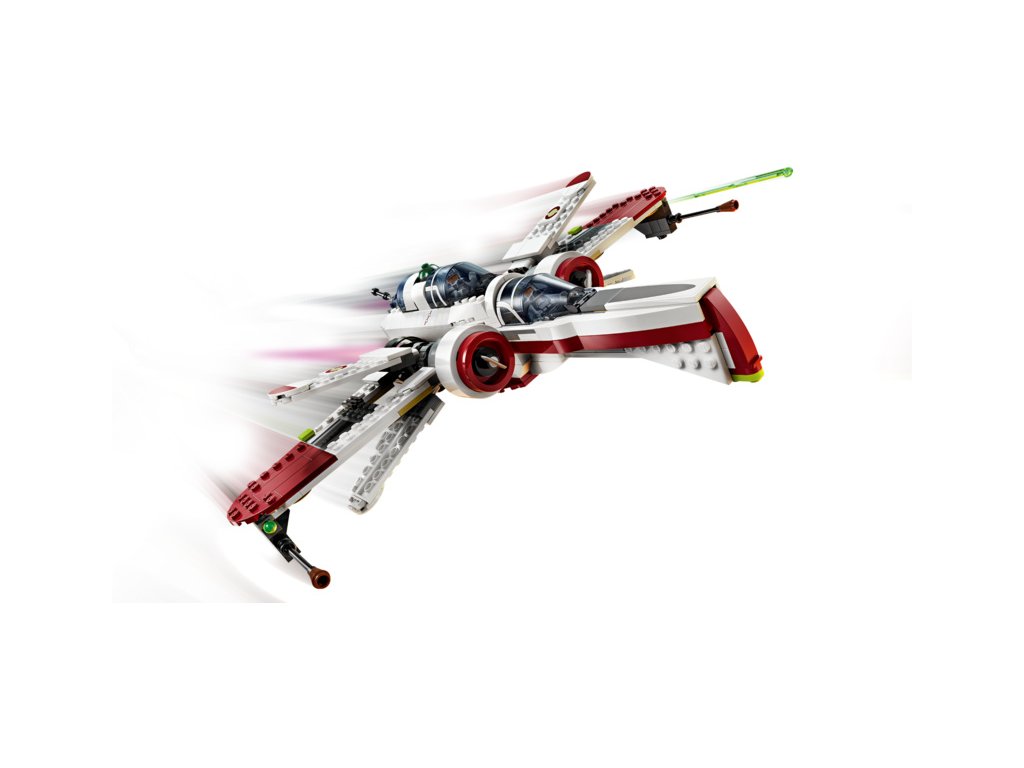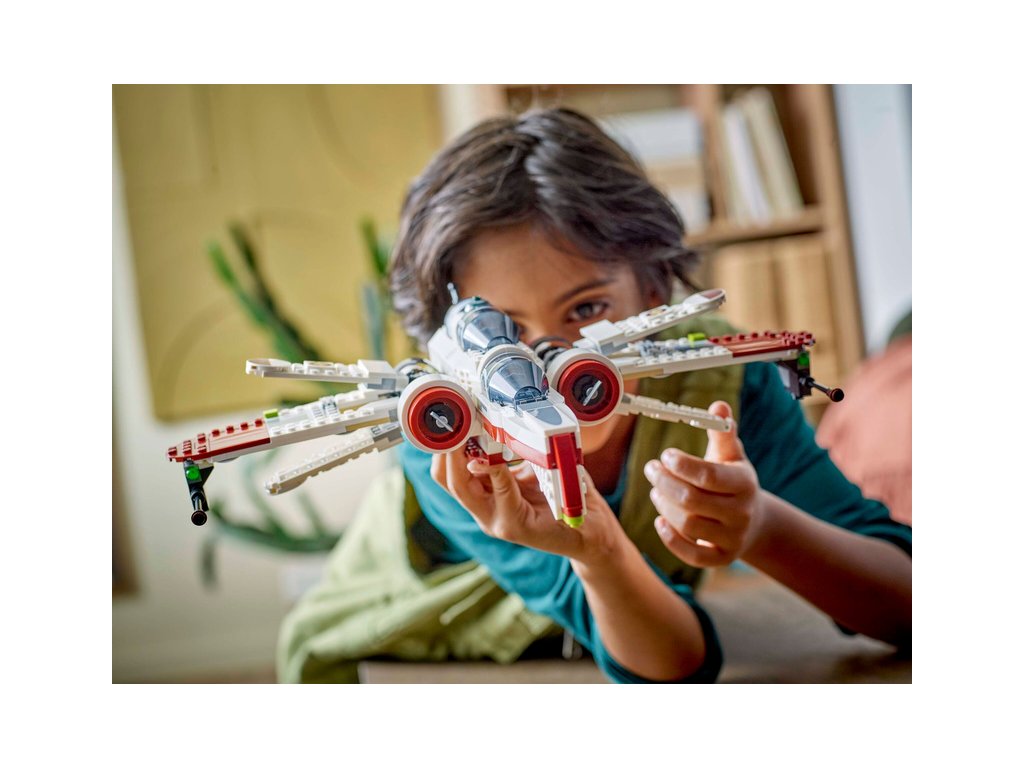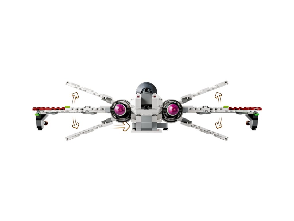 - Stíhačka z kostek LEGO® – Součástí jsou 3 otevírací kokpity, prostor pro R4-P44, 6 křídel, včetně 4 pákou ovládaných nastavitelných křídel pro útočný a cestovní režim, a 2 pružinové vystřelovače