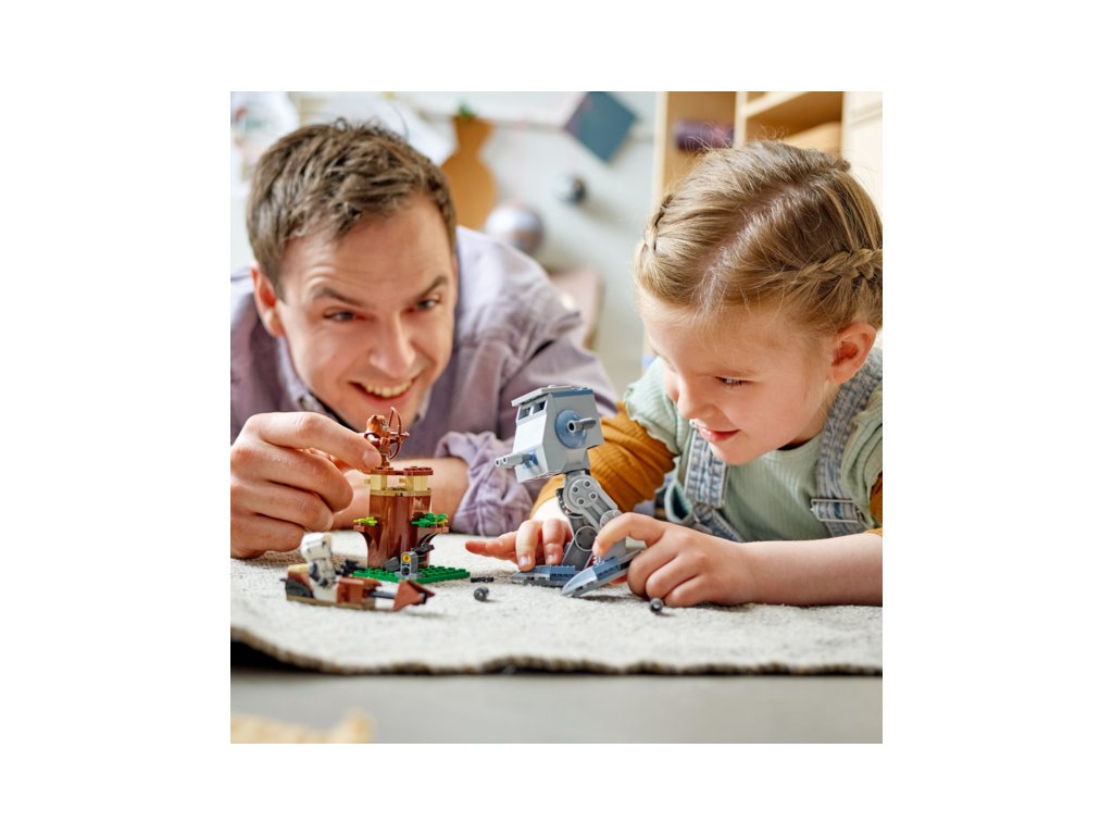 - 3 minifigurky LEGO® se zbraněmi – Ewok Wicket s lukem a šípem a průzkumný voják a řidič AT-ST s blasterovými pistolemi slibují spoustu akčních příběhů a soubojů svedených na planetě Endor