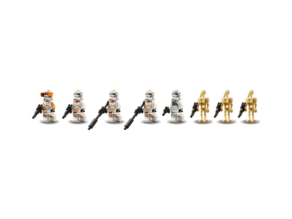 Stavebnice obsahuje 5 minifigurek LEGO – Velitele Codyho, klonovaného dělostřelce z 212. legie a 3 klonované vojáky z 212. legie –, které se utkají se 3 figurkami LEGO bitevních droidů a sestavitelným pavoučím droidem. Samozřejmě nechybí ani spousta zbraní. Návod na stavění naleznete v krabici nebo v aplikaci LEGO, kde můžete využít i zobrazovací nástroje, které tvůrčí zážitek ještě umocní.