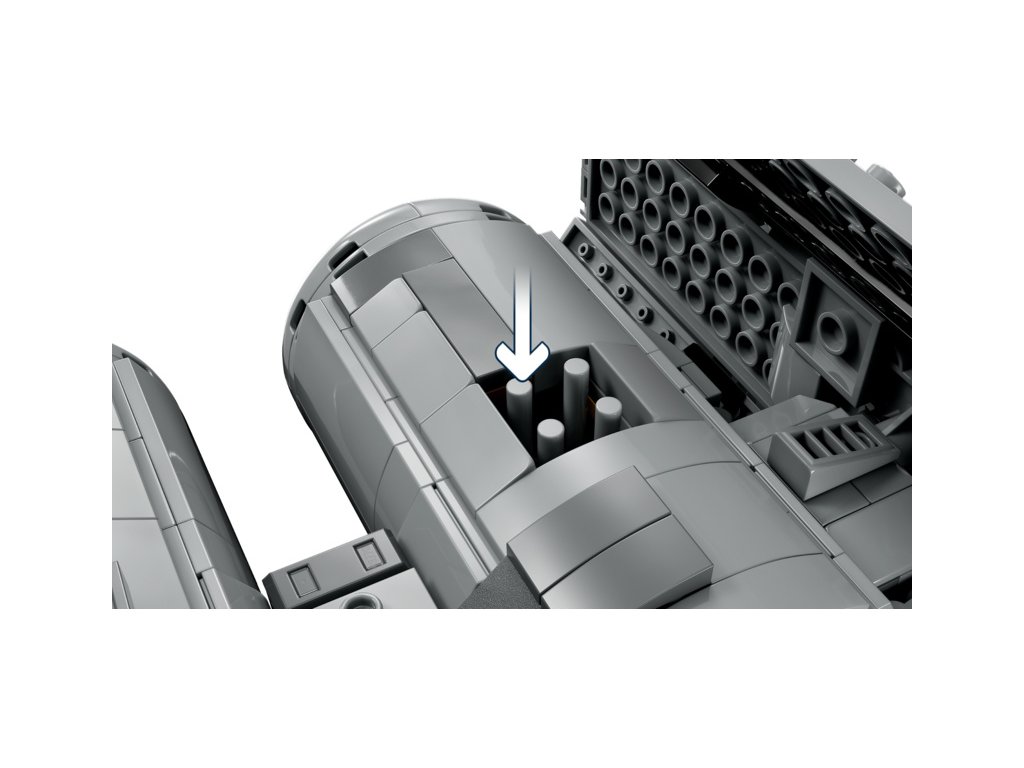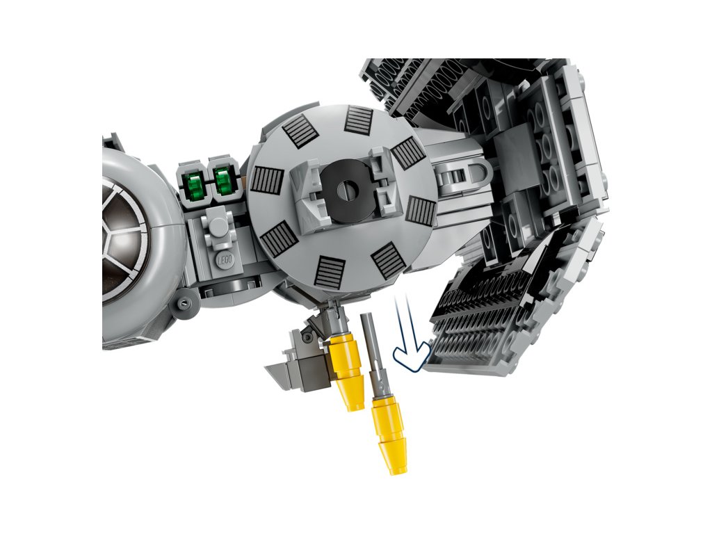 - Sestaven pro boj – Bombardér TIE je vybaven otevíracím kokpitem pro minifigurku, přihrádkou pro 4 torpéda (stavebnice obsahuje 6 sestavitelných torpéd), která lze shodit, a 2 vystřelovači