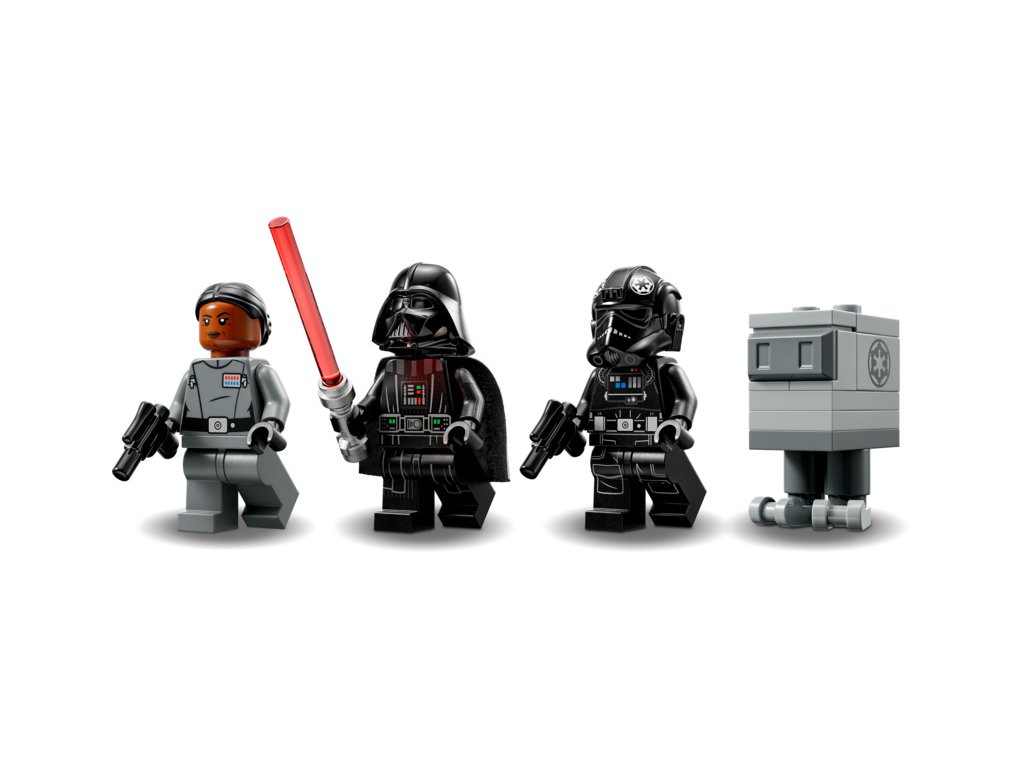 - 3 minifigurky LEGO® Star Wars™ se zbraněmi a Gonk droid – Darth Vader se světelným mečem, viceadmirálka Sloane s blasterovou pistolí a pilot bombardéru TIE s blasterovou pistolí, a navíc figurka LEGO Gonk droida