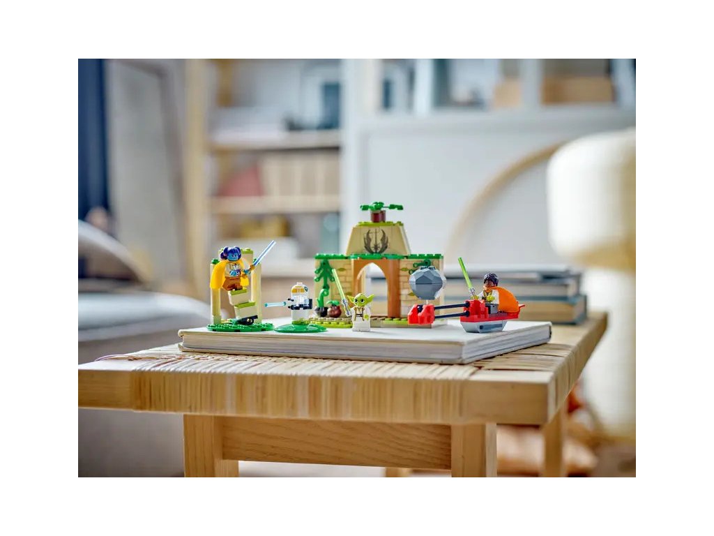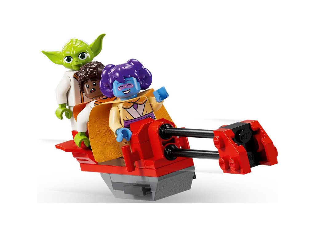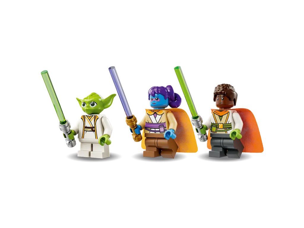 - 3 minifigurky LEGO® Star Wars™ – Lys Solay a Kai Brightstar se středně velkýma nohama a mistr Yoda s malýma nohama. Každá postava má vlastní světelný meč pro jediský výcvik