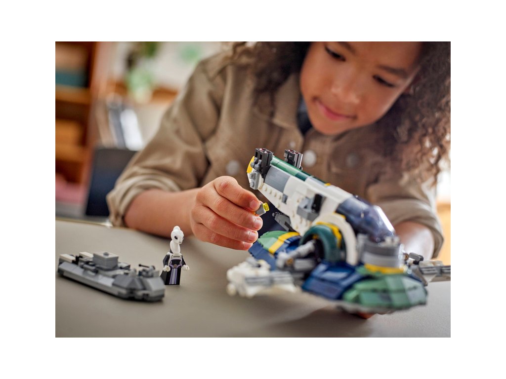 - Užijte si zábavu společně – Objevte i model Jango Fett a jeho vesmírná loď třídy Firespray (75409, prodává se samostatně), doprovodnou stavebnici, se kterou si děti i dospělí užijí společné stavění