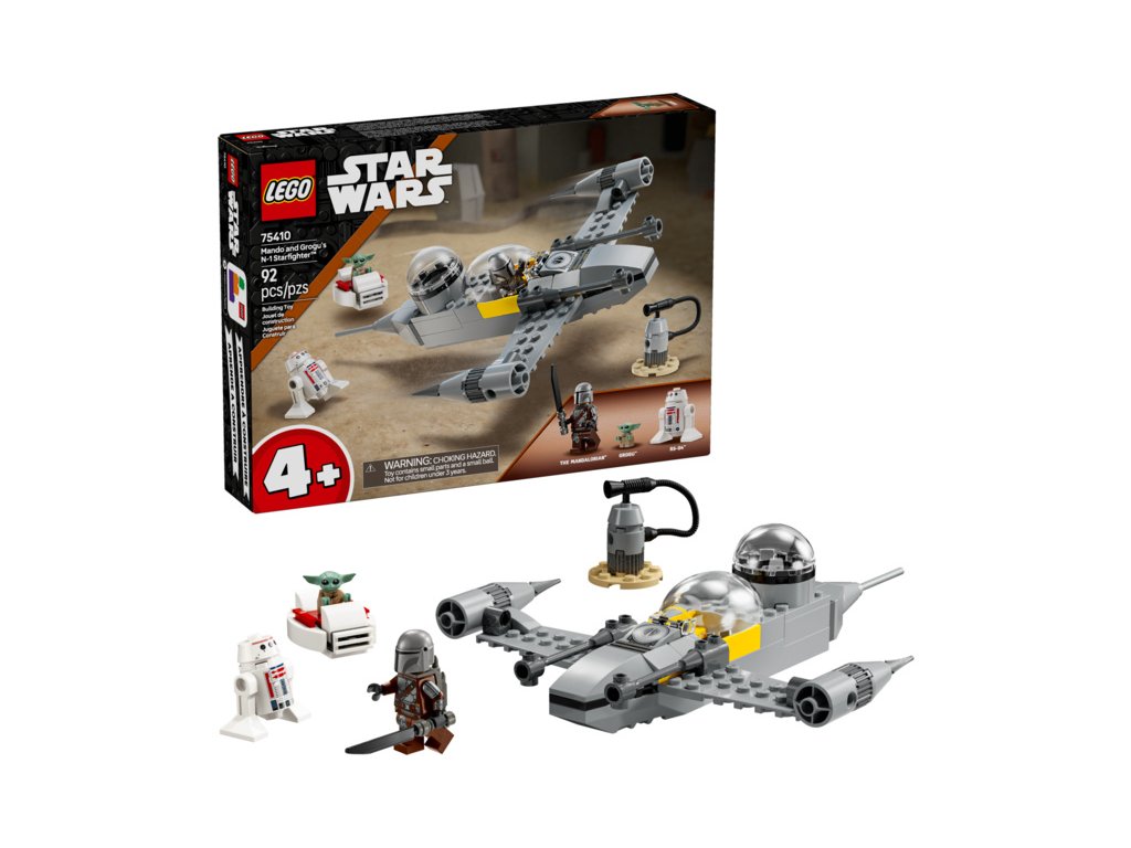 - Stavebnice Mando, Grogu a stíhačka N-1 Starfighter™ – Děti od 4 let se s touto zábavnou začátečnickou stavebnicí naučí stavět z kostek LEGO® a vymyslí si vlastní fantastické příběhy s hrdiny ze seriálu Star Wars: The Mandalorian™