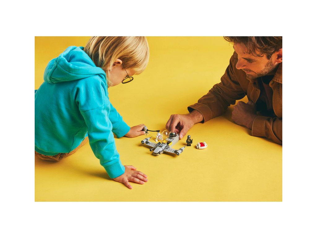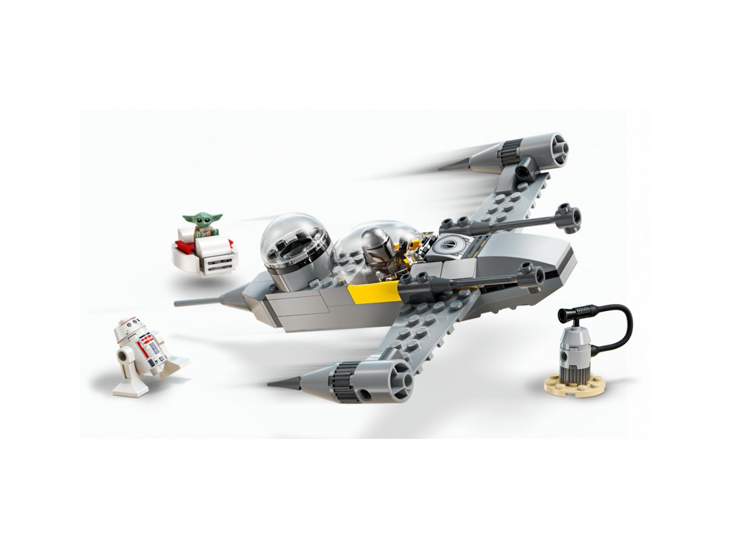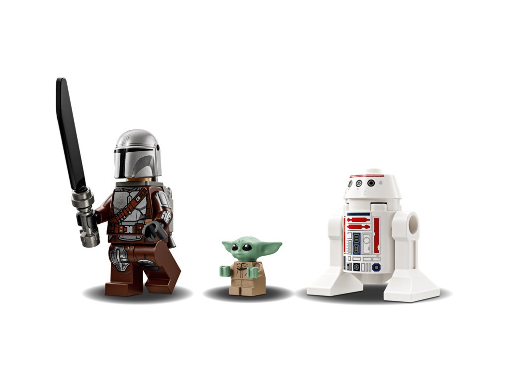 Tato stavebnice stíhačky N-1 obsahuje 3 postavy LEGO Star Wars: Mandaloriana s temným mečem a jetpackem, Grogua s vznášejícím se kočárkem a R5-D4. Posaďte Mandaloriana do otevíracího kokpitu stíhačky N-1 a Grogua do prostoru pro cestující vzadu.