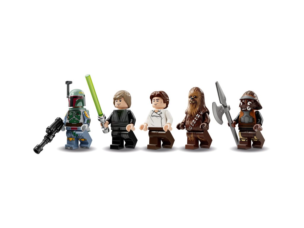 Tato sběratelská stavebnice představuje skvělý dárek pro kluky, holky a fanoušky klasické ságy Star Wars™ a obsahuje 6 minifigurek LEGO, včetně Luka Skywalkera, Hana Sola, Chewbaccy, Landa Calrissiana a Boby Fetta, a navíc autentické doplňky. Další postavou v této stavebnici je speciální minifigurka Niena Nunba, která vznikla k 25. výročí LEGO Star Wars.