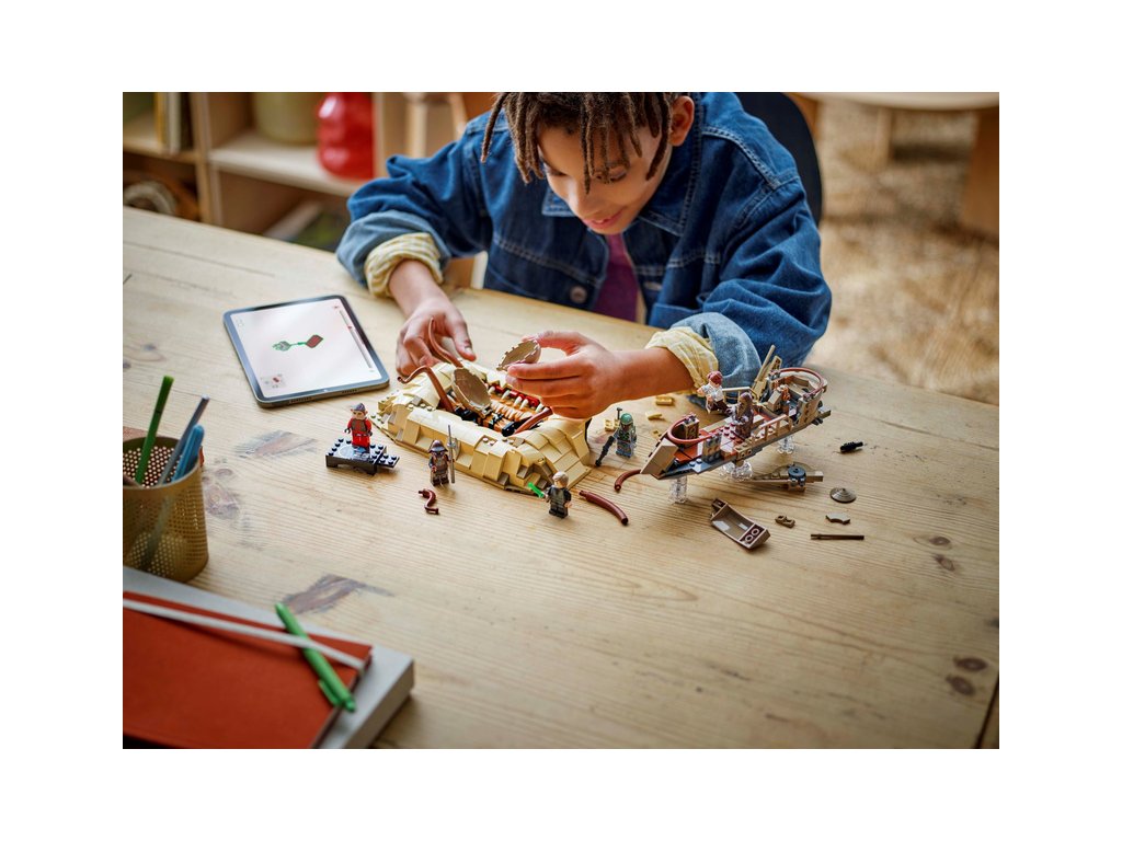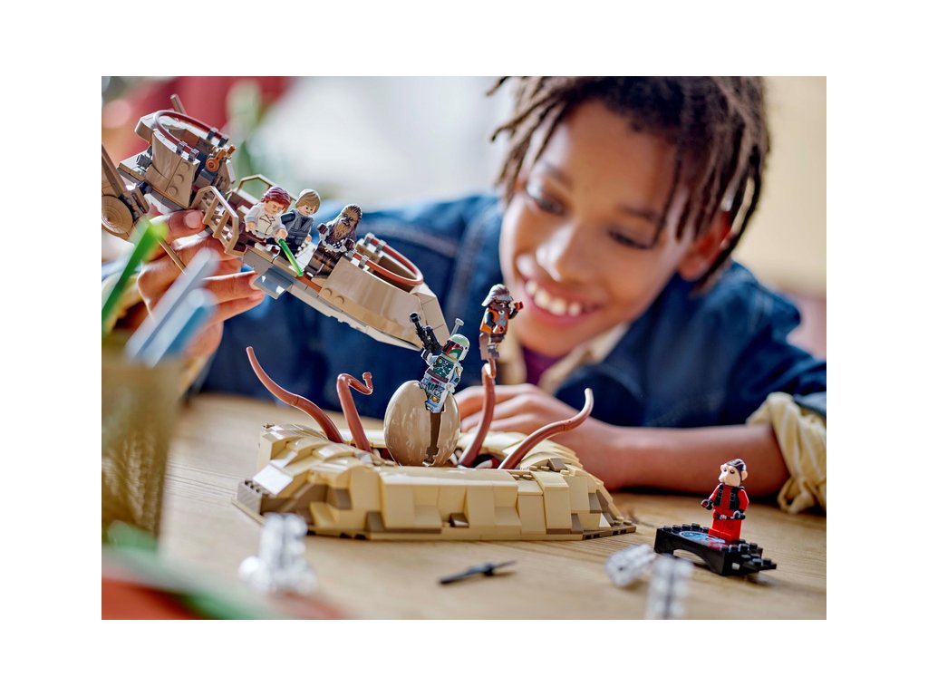 Připomeňte si napínavou scénu z filmu Star Wars: Návrat Jediů a vymyslete nové dobrodružné příběhy se stavebnicí Pouštní skif a Sarlaccova jáma z kostek LEGO® pro děti od 9 let.