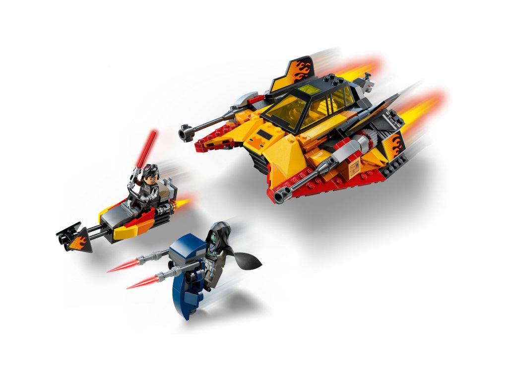 - 2 vozidla LEGO® Star Wars™ v 1 – Sněžný spídr Force Burner má potisk s plameny, otevírací dvojitý kokpit se skrytou odnímatelnou spídrovou motorkou a zadní vystřelovač
