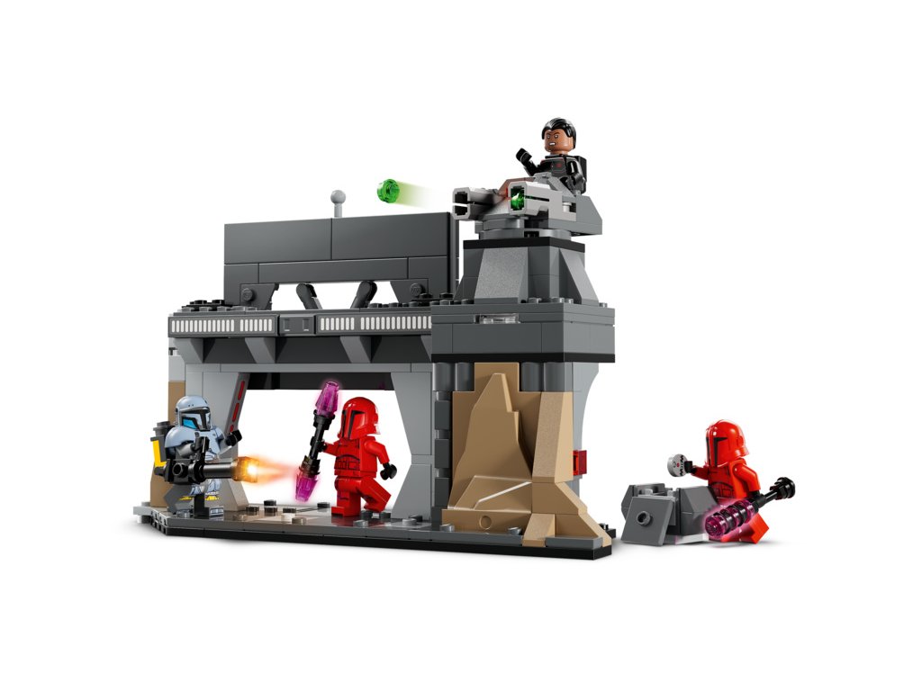- Stavebnice Star Wars™ pro děti – Mandaloriánská základna v této stavebnici má těžce obrněné dveře se spouští, která se aktivuje při zabouchnutí, ovládací panely, a navíc otočnou vystřelovací věž