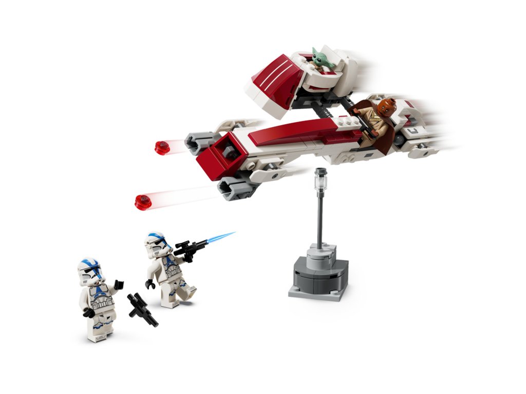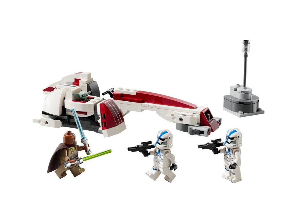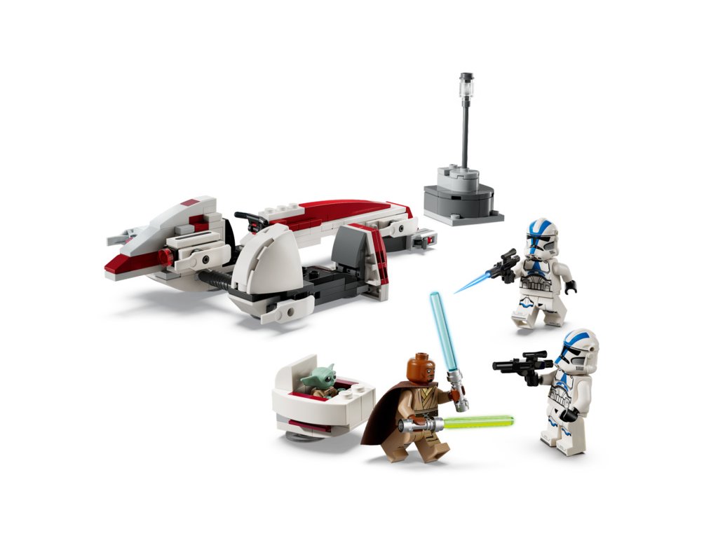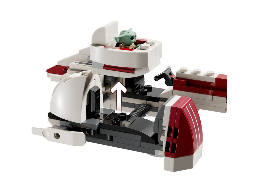- Propracovaný model Star Wars™ spídru BARC – Součástí je kokpit pro minifigurku, 2 vystřelovače a odnímatelný postranní vozík s prostorem pro Groguův vznášející kočárek