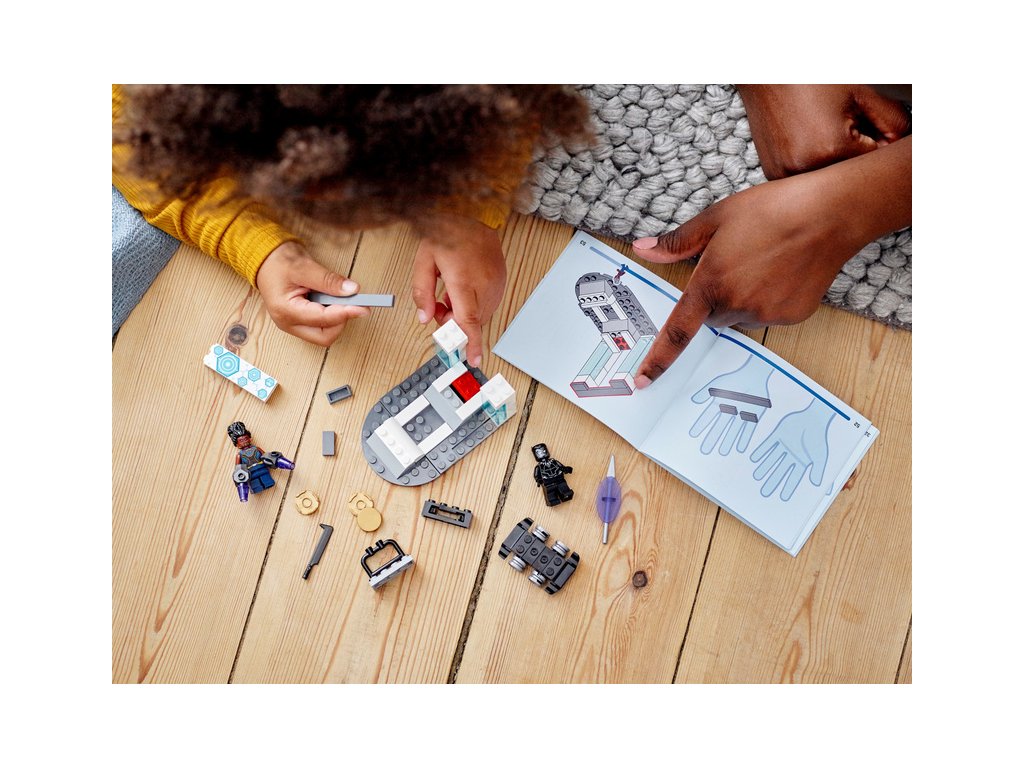 - Postavy superhrdinů – obsahuje minifigurky Shuri a Black Panthera, vystřelovač disků, doplňky a začátečnickou kostku, díky které se děti mohou pustit do hraní bez zbytečného čekání