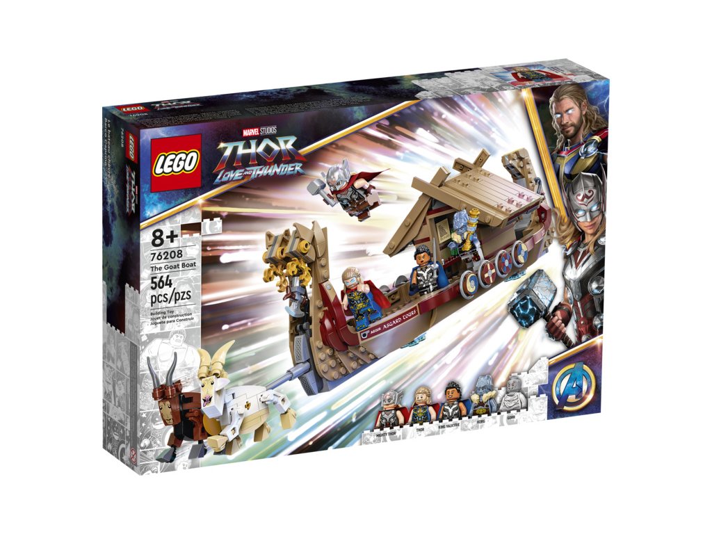 - Thorova vikingská loď – stavebnice LEGO® Marvel Loď s kozím spřežením (76208) dětem umožňuje přehrávat si scény z filmu Thor: Love and Thunder z dílny studia Marvel