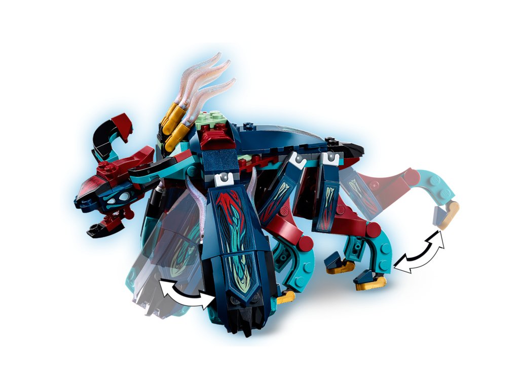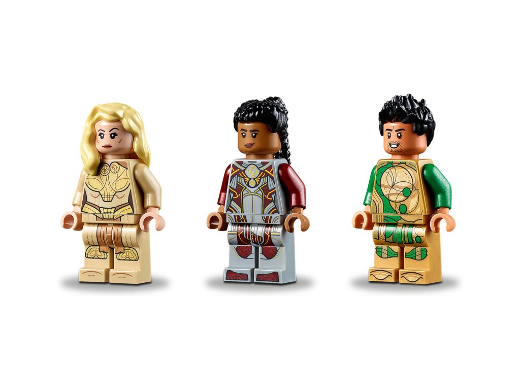 - Součástí jsou 3 minifigurky Eternalů od LEGO® Marvel (Thena, Makkari a exkluzivní Gilgameš), pohyblivý 6nohý Deviant s otevírací pusou, dýkou, zbraní zabudovanou v pěsti a vystřelovačem.