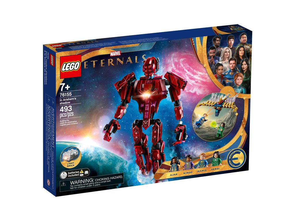 - Sada Ve stínu Arishema (76155) od LEGO® Marvel Eternals přenáší akci z filmu studia Marvel do rukou malých superhrdinů, kteří mají za úkol pomoci 4 Eternalům zatočit se zlým Deviantem.