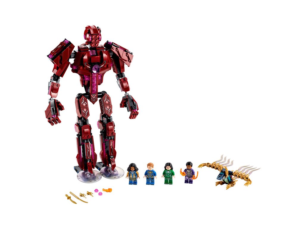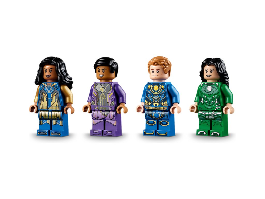 - Součástí jsou 4 minifigurky Eternalů – Ikaris, Sersi a exkluzivní Ajak a Kingo – figurka Devianta a pohyblivý Celestial se svítící hrudí, 2 dýkami, 1 mečem, 2 miniaturními vystřelovači a čepelí.