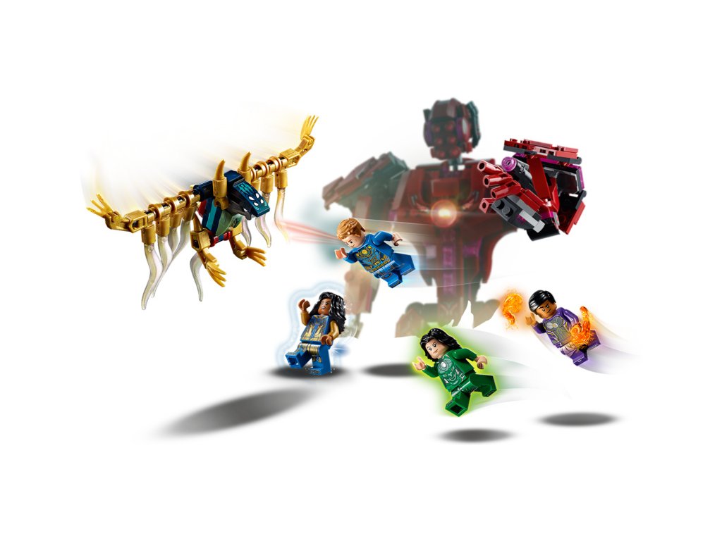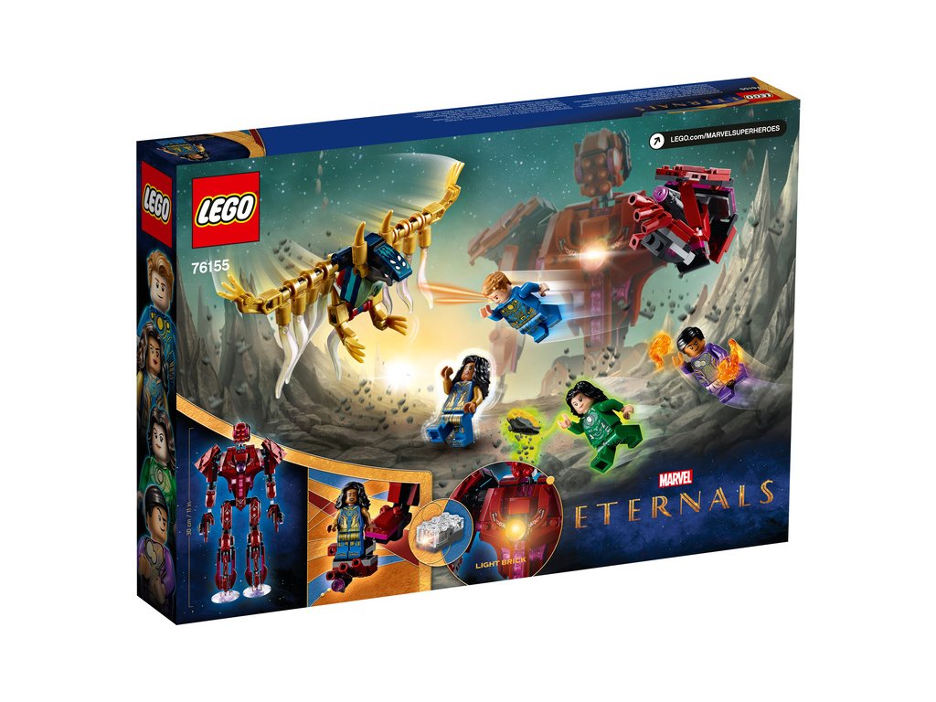 Děti mohou spojit své síly se 4 Eternaly a porazit společně netopýra Devianta. Eternalové mají parádní schopnosti: Ajak dokáže jako jediná komunikovat s Celestialy, mocnými mimozemskými bytostmi; Sersi umí přeměnit hmotu na cokoli, co si zamane; Ikaris má nadlidskou sílu a Kingo dokáže pracovat se zemskou energií. Sada obsahuje také pohyblivou figurku Celestiala, která v ruce udrží minifigurku Eternala. A pokud hračku kupujete pro fanouška minifigurek, upozorňujeme, že tato LEGO sada jako jediná obsahuje minifigurky Ajak a Kingoa!