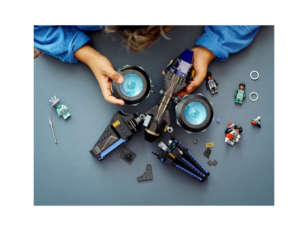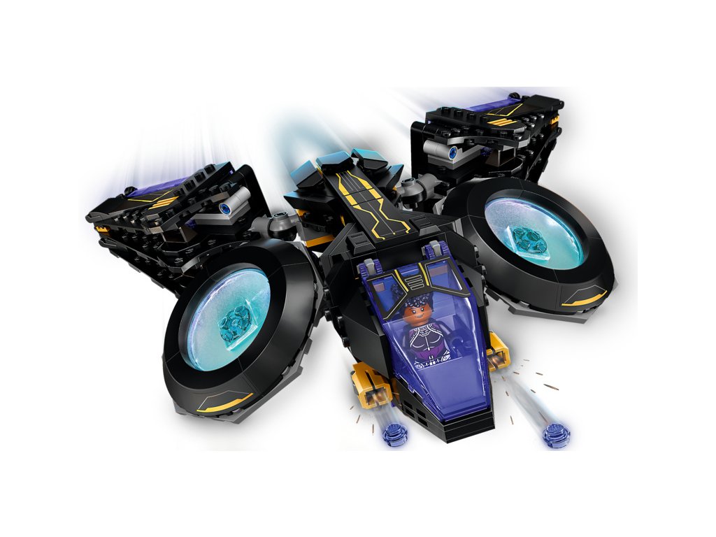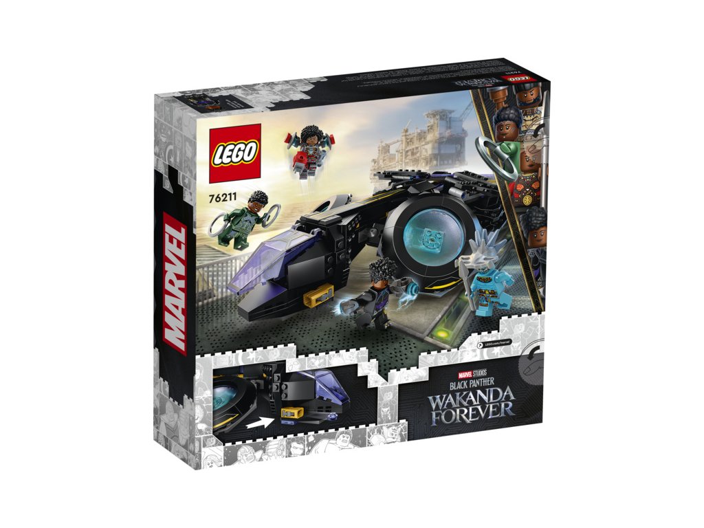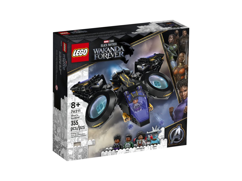 Autentická replika působivého tryskáče Sunbird, který ve filmu studia Marvel Black Panther 2 pilotuje princezna Shuri. Model všestranného výkonného superhrdinského letounu se 2 obrovskými pohyblivými motory, které lze polohovat do nejrůznějších úhlů. Křídla je možné nastavit do požadovaného směru, tryskáč je vybaven 2 vystřelovači a v zadní části modelu najdete úložný prostor pro Shuriiny zbraně. Součástí stavebnice jsou 4 minifigurky postav Shuri, Riri, Nakii a Attumy, kteří jsou vyzbrojeni parádními zbraněmi a navíc mají k dispozici i nejrůznější doplňky.