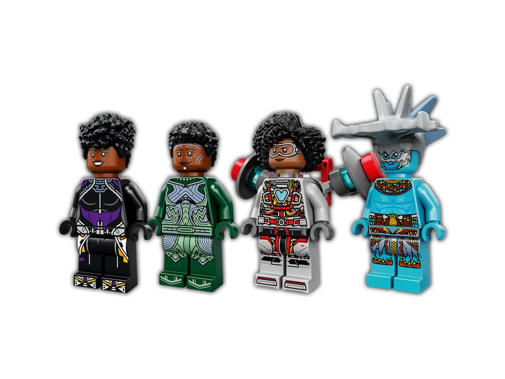 - 4 postavy – stavebnice obsahuje minifigurky Shuri, Riri, Nakiu a Attumu se zbraněmi a doplňky. Sestavitelný Sunbird je vybaven 2 vystřelovači a polohovatelnými motory a křídly