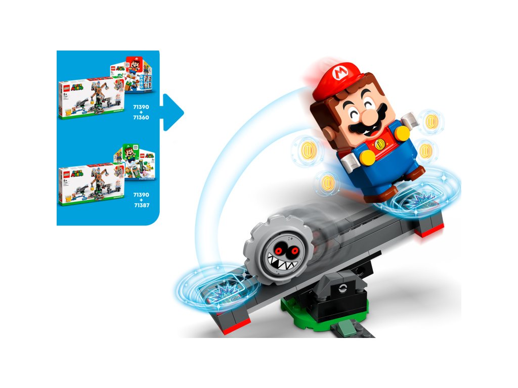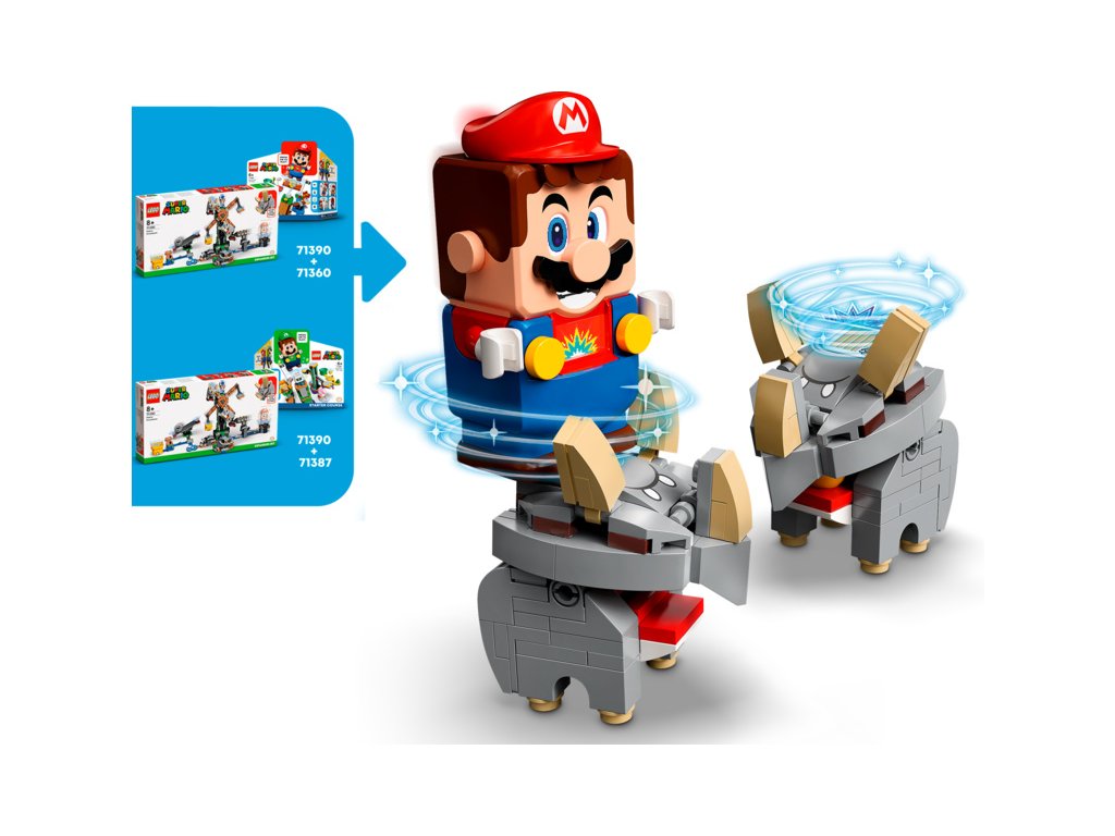 Dopřejte dětem možnost prožívat ve vlastním světě LEGO® Super Mario™ pořádně roztočená dobrodružství díky rozšiřujícímu setu Boj s Reznorem.