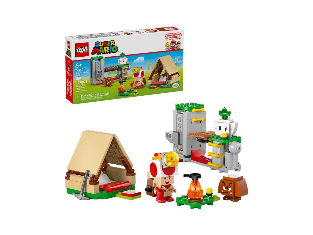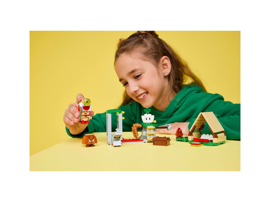 - Zábavný set LEGO® Super Mario™ pro děti – Užijte si se stavebnicí Captain Toad a jeho tábor spoustu zábavy a postavte z kostek stan a táborák, hledejte poklad, zničte most, porazte nepřátele a další