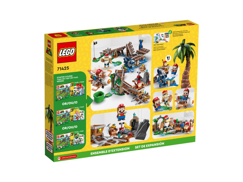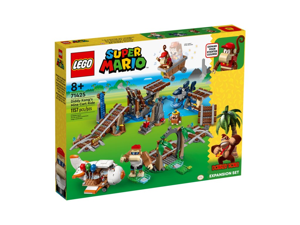 Postavte kultovní úroveň s Donkey Kongem ve světě LEGO® Super Mario™ z kostek s tímto rozšiřujícím setem Diddy Kongova jízda v důlním vozíku (71425). Posaďte figurku LEGO® Maria, LEGO® Luigiho nebo LEGO® Peach™ (nejsou součástí balení) do důlního vozíku a jezděte s ní po trati. Odstrčte Snaggles z cesty, opravte rozbitou část trasy, porazte Mole Minera a nechte „vybuchnout“ skálu, ve které se ukrývají banány k „snědku“ nebo jako dárek pro Funky Konga nebo Diddy Konga. Kupte si balónky z letadlového obchodu a „proleťte“ se letadlem, abyste získali více digitálních mincí. Poznámka: Pro interaktivní herní zážitek je zapotřebí některý ze startovacích setů 71360, 71387 nebo 71403.