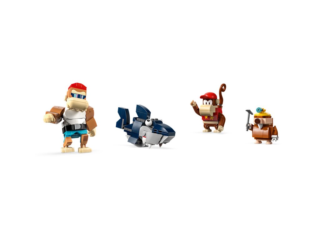 - Součástí sady jsou 4 figurky LEGO® Super Mario™ ze světa Donkey Konga – Funky Kong a Diddy Kong, a navíc Snaggles, kterého musíte odstrčit, a Mole Miner, kterého musíte porazit