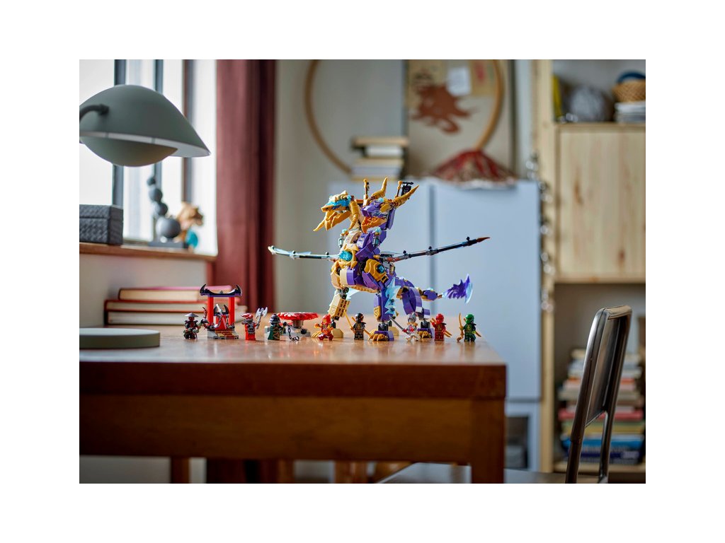 - Rozměry – Tato stavebnice LEGO® NINJAGO® se skládá z 869 dílků a figurka Draka soustředění Arca měří přes 27 cm na výšku