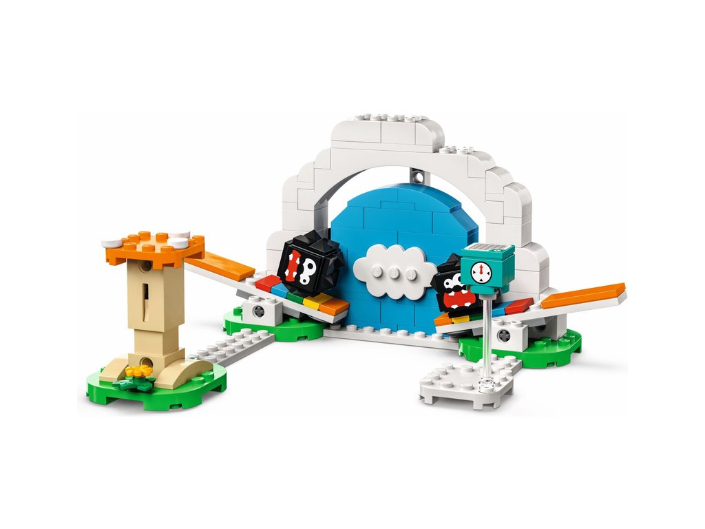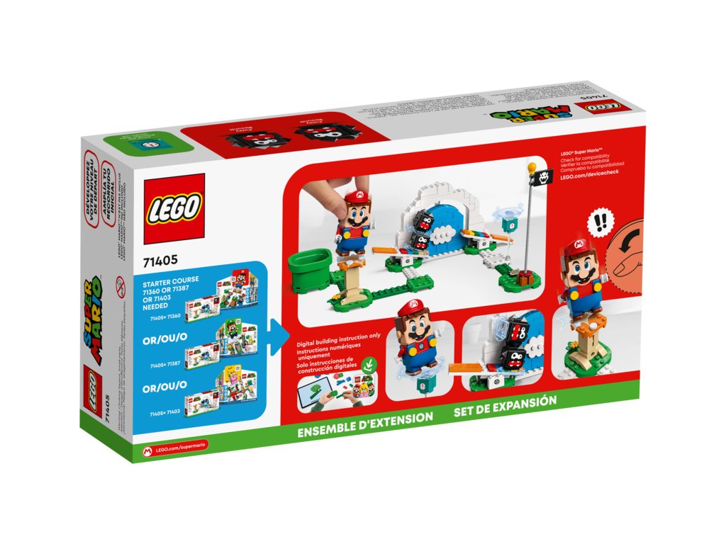 Přeneste akci ve stylu LEGO® Super Mario™ do nebeských výšin s létajícími protivníky z rozšiřujícího setu Fuzzy a ploutve (71405), který je určen dětem od 6 let. Set obsahuje sestavitelný model nebe a mráčku se 2 figurkami LEGO Fuzzyho, trampolínu ve tvaru houby a akční kostku času. Pomozte LEGO® Mariovi, LEGO® Luigimu nebo LEGO® Peach™ (figurky nejsou součástí balení) skočit z trampolíny ve tvaru houby a odpálit do vzduchu dva protivníky, za což budete odměněni pořádnou porcí digitálních mincí. (Poznámka: Pro plnohodnotný interaktivní herní zážitek je vyžadován startovací set 71360, 71387 nebo 71403.)