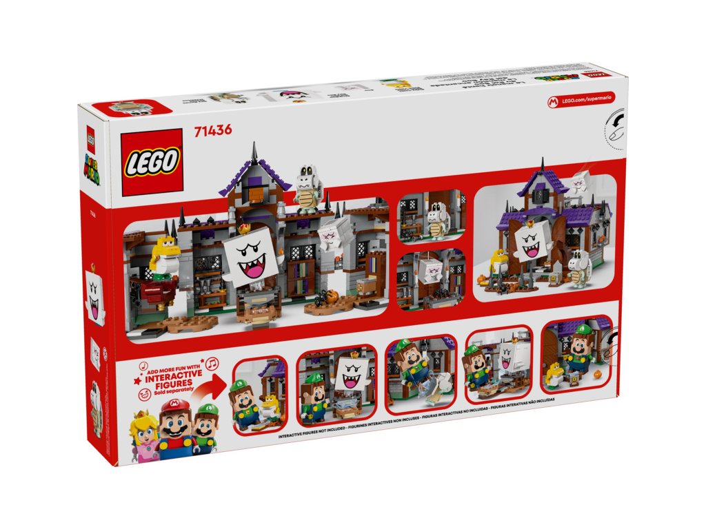 Přidejte figurku LEGO® Mario™, LEGO® Luigi™ nebo LEGO® Peach™ (ze setů 71439, 71440 nebo 71441 – prodávají se samostatně) a pusťte se do interaktivního hraní. Pomozte postavičce posbírat odměny z kostky s mincemi, kostky truhly s pokladem a kostky klíče, porazte Booa a Dry Bonese, svrhněte King Booa ze stolu na nádvoří a nakonec otevřete truhlu s pokladem.