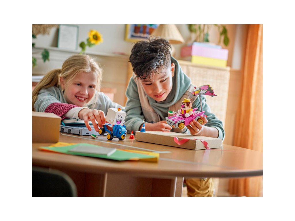 Závoďte, driftujte, létejte a bojujte s tímto setem LEGO® Super Mario™ Mario Kart™ – Wario a King Boo. Set představuje zábavný dárek pro kluky, holky a obecně gamery od 8 let.