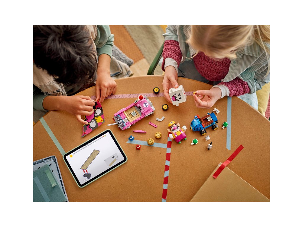 - Závody Mario Kart™ z kostek – Spojte se s Wariem v Badwagonu a King Booem v Tedy Buggy a pusťte se do bitev s vrháním krunýřů, užijte si zábavu při driftování a létání a závoďte mezi dopravními kužely