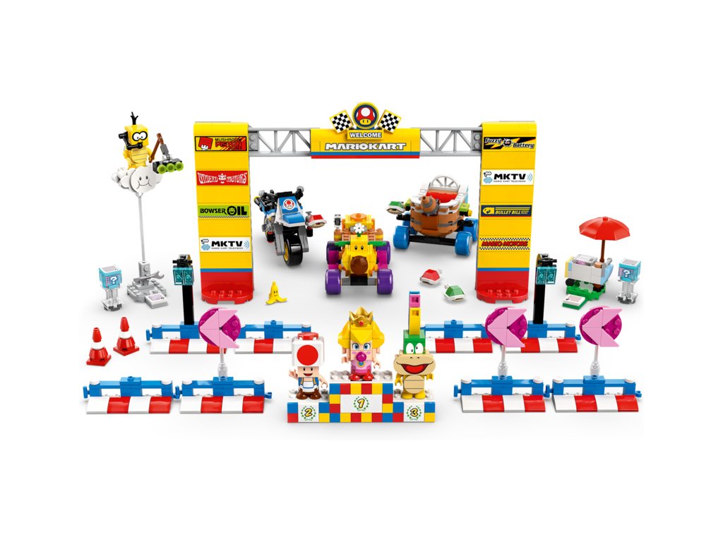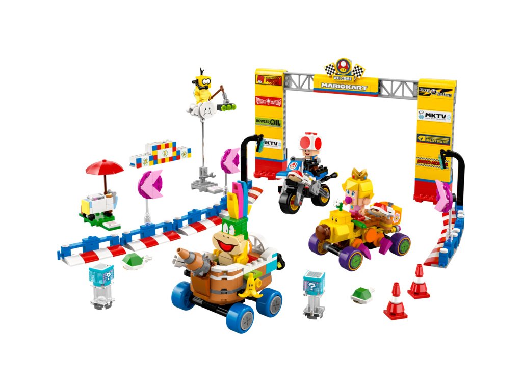 - Přizpůsobitelná závodní set – Set obsahuje vozidla Wild Wiggler, Landship a Standard Bike, která mohou střílet krunýře, Toadův vozík se sladkostmi, startovní bránu, Lakituův oblak a stupně vítězů