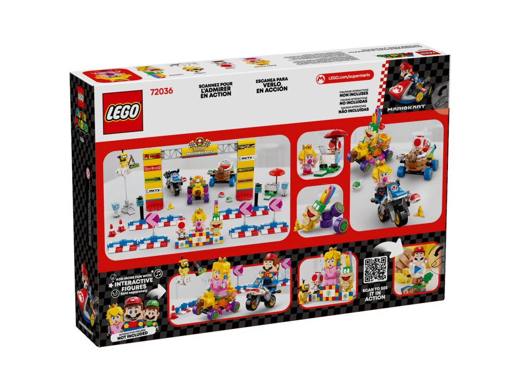 - Nové herní možnosti – Prozkoumejte celou řadu setů LEGO® Super Mario™: Mario Kart™ (prodávají se samostatně) a objevte další sestavitelná vozidla Mario Kart a postavy, se kterými můžete závodit