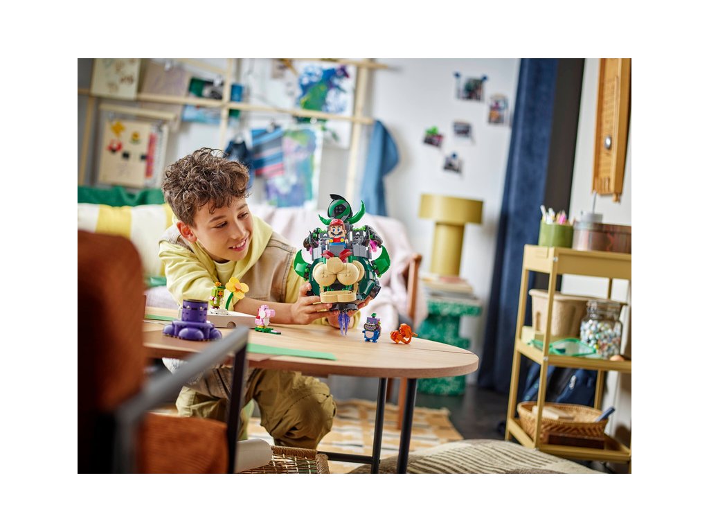- Interaktivní hraní – Přidejte k této stavebnici figurku LEGO® Mario™, LEGO® Luigi™ nebo LEGO® Peach™ (figurky nejsou součástí balení) pro digitální reakce a zahrajte si na závěrečnou bitvu bossů z videohry Super Mario Bros™ Wonder