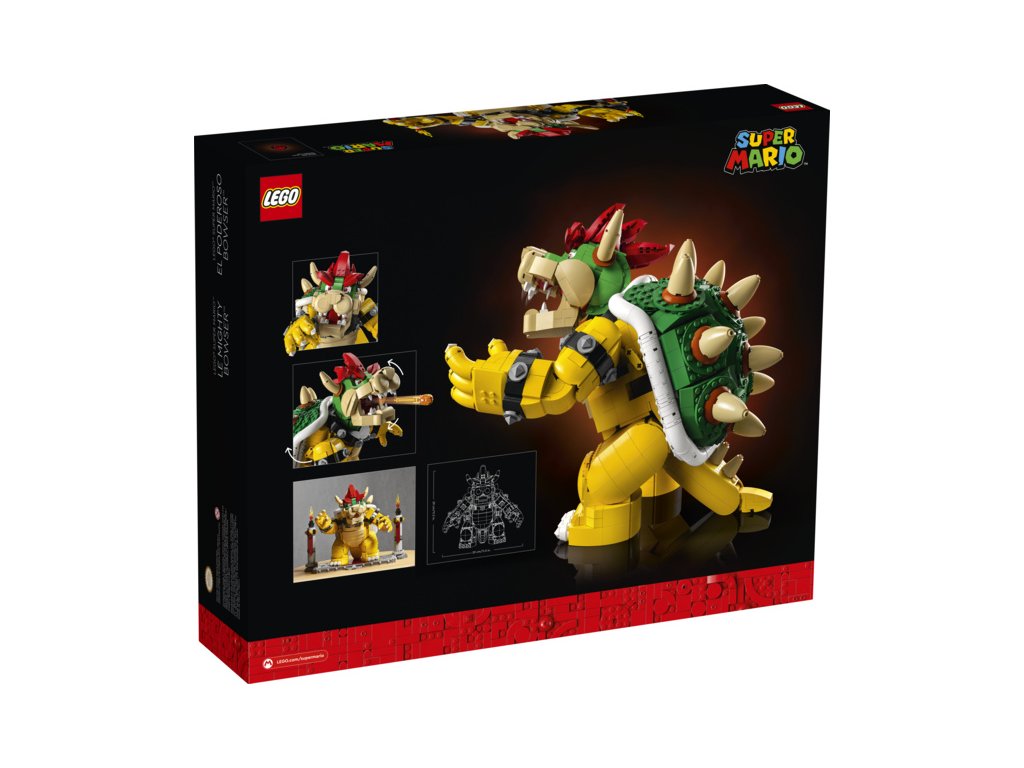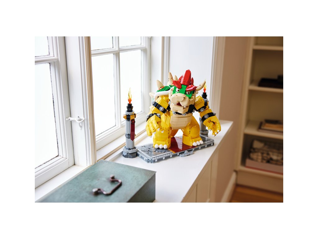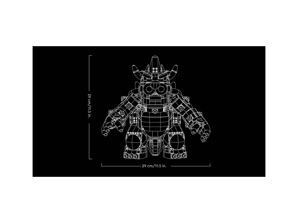 - Všemocný Bowser™ na výstavku – Tento model LEGO® Super Mario™ měří i s podstavcem na vystavení 32 cm na výšku, 41 cm na šířku a 28 cm do hloubky