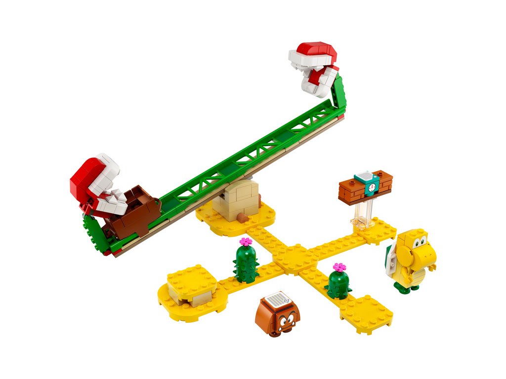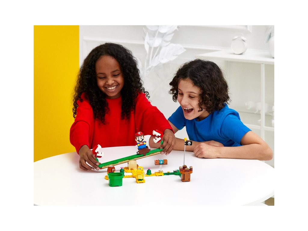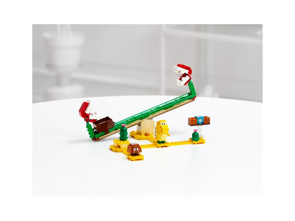 - Děti přidají rozšiřující set Závodiště s piraněmi (71365) ke svému startovacímu setu LEGO® Super Mario™ Dobrodružství s Mariem (71360) a poměří síly s kamarády, kdo je na houpačce šikovnější.