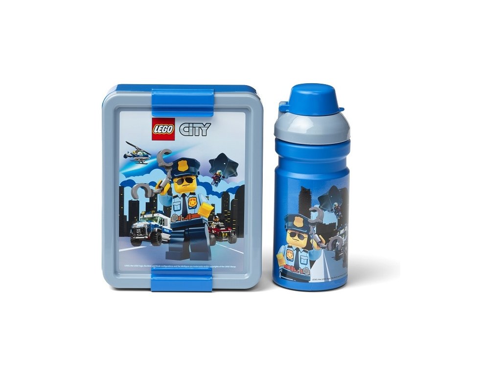 Svačinový set LEGO obsahuje praktický box s dobře těsnícím víkem a láhev na pití s uzávěrem. Kompletní svačinová výbava na výlety i do školy s úžasným motivem od LEGO.