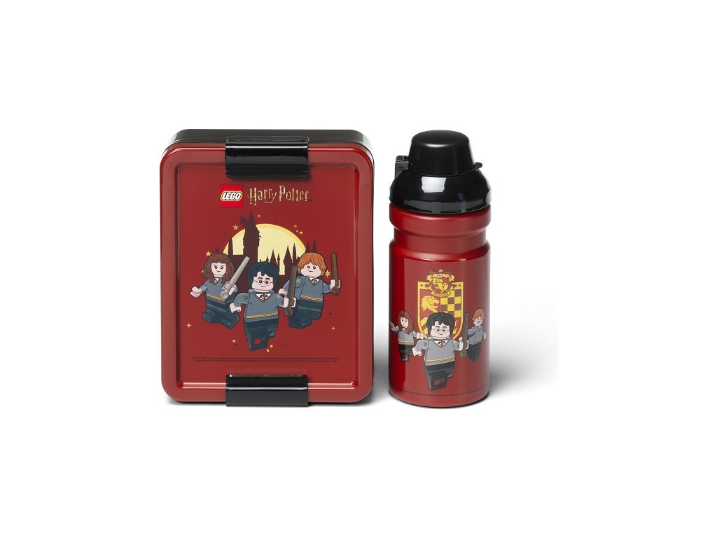 Svačinový set LEGO obsahuje praktický box s dobře těsnícím víkem a láhev na pití s uzávěrem. Kompletní svačinová výbava na výlety i do školy s úžasným motivem od LEGO.