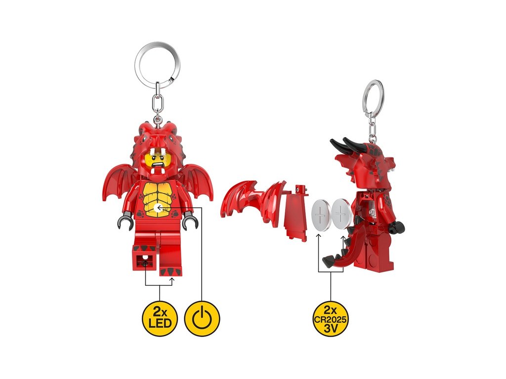 Figurka Červený drak jako LED svítící přívěšek na batoh nebo klíče. Sběratelské LEGO postavičky s tlačítkem na hrudi a LED diodami v nohách nesmí chybět ve Vaší sbírce LEGO figurek! Výška figurky je 7,5 cm. Baterie součástí balení. Doporučený věk: 6+.