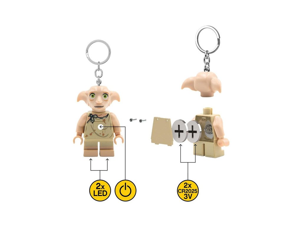 Harry Potter Dobby jako LED svítící přívěšek na batoh nebo klíče. Sběratelské LEGO postavičky s tlačítkem na hrudi a LED diodami v nohách nesmí chybět ve Vaší sbírce LEGO figurek! Výška figurky je 6 cm, má pohyblivé ruce. Baterie součástí balení. Doporučený věk: 6+.