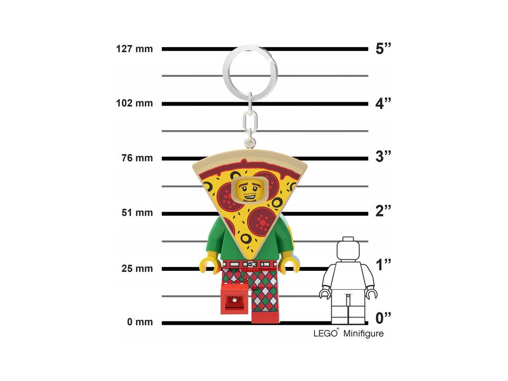 LEGO postavička Iconic Pizza jako LED svítící přívěšek na batoh nebo klíče. Sběratelské LEGO postavičky s tlačítkem na hrudi a LED diodami v nohách nesmí chybět ve Vaší sbírce LEGO figurek! Výška figurky je 7,5 cm, má pohyblivé ruce i nohy. Baterie součástí balení. Doporučený věk: 6+.